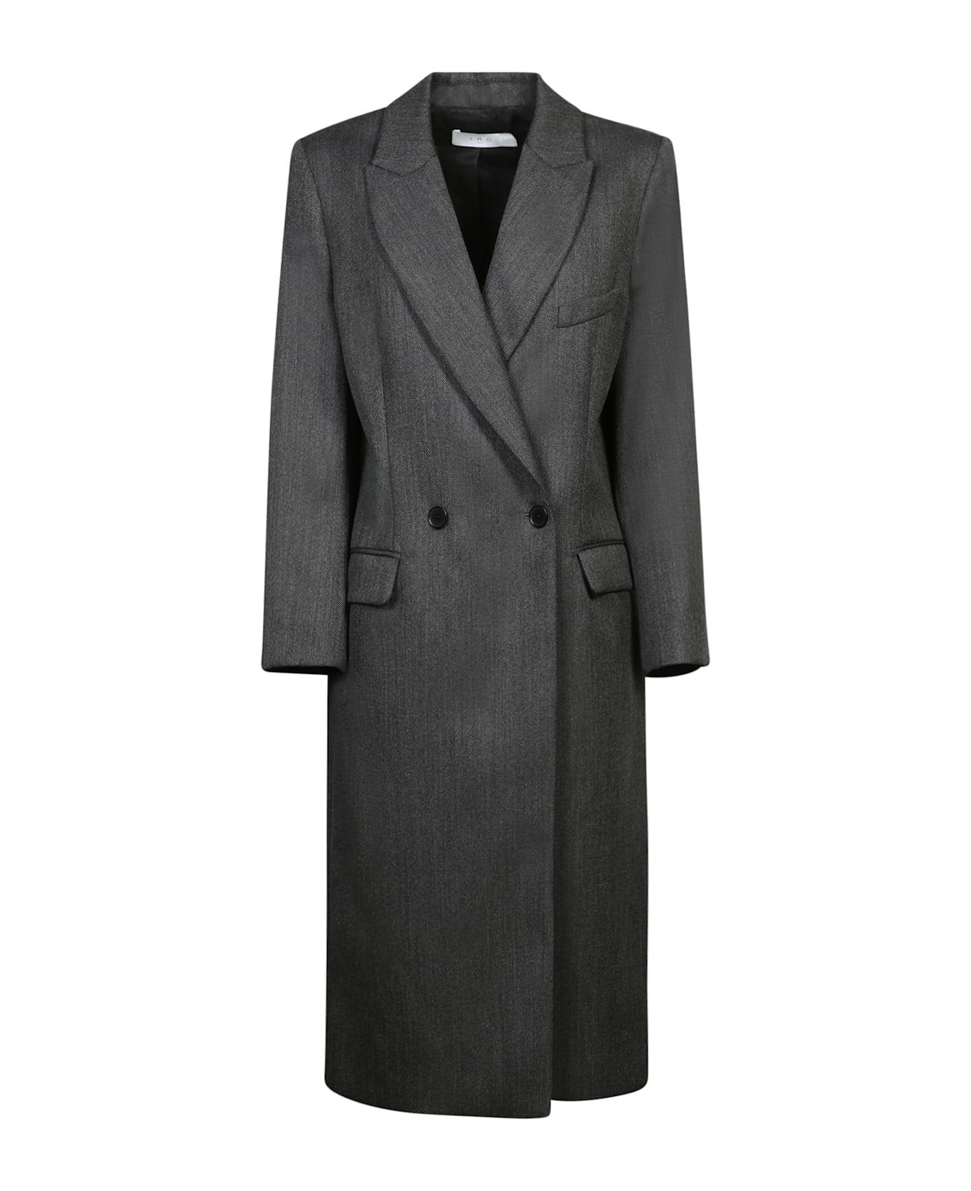 This Iro grey coat features an elegant double-breasted cut, perfect for a sophisticated look in both formal and informal occasions. Entirely made from wool, it provides warmth and comfort without sacrificing style.
