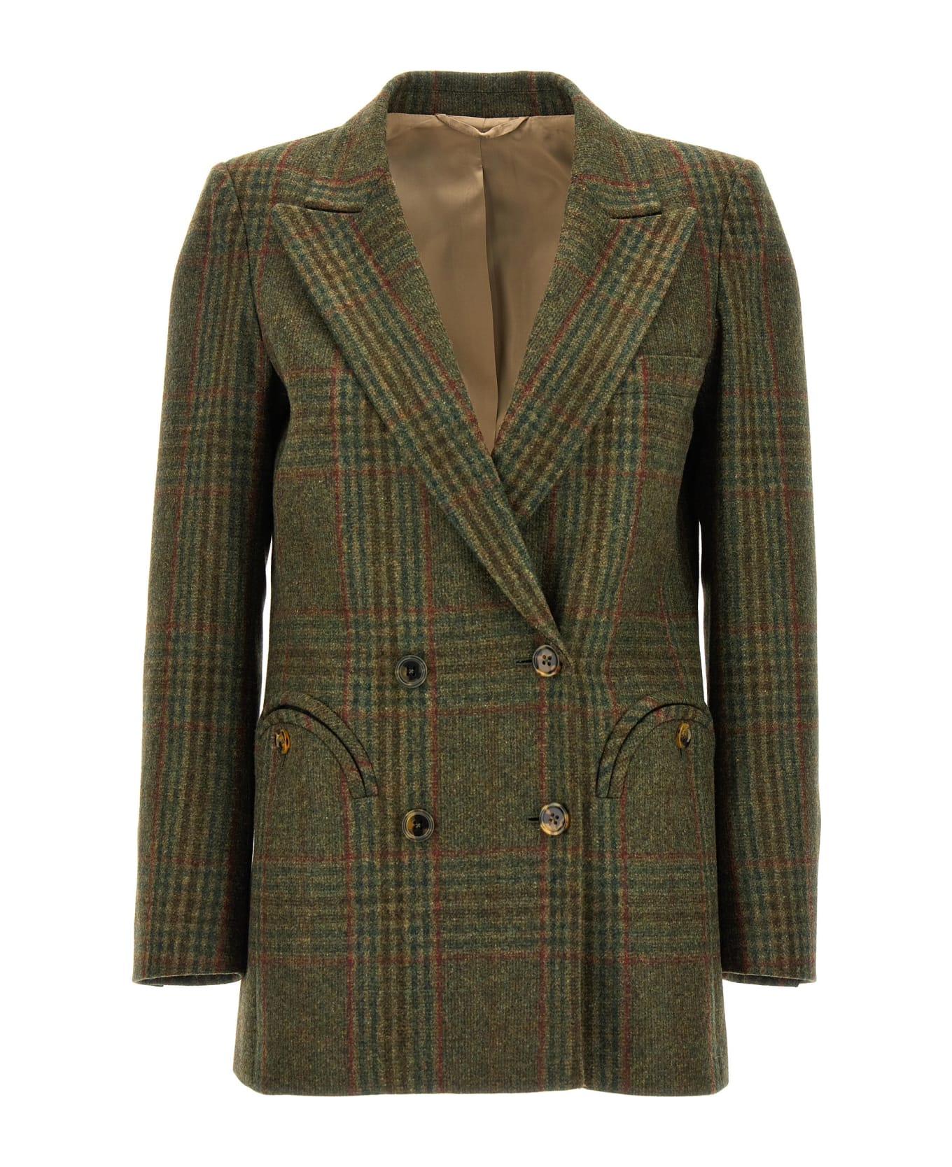 'Low noise everyday' virgin wool blazer with Prince of Wales pattern, double breasted with viscose lining.