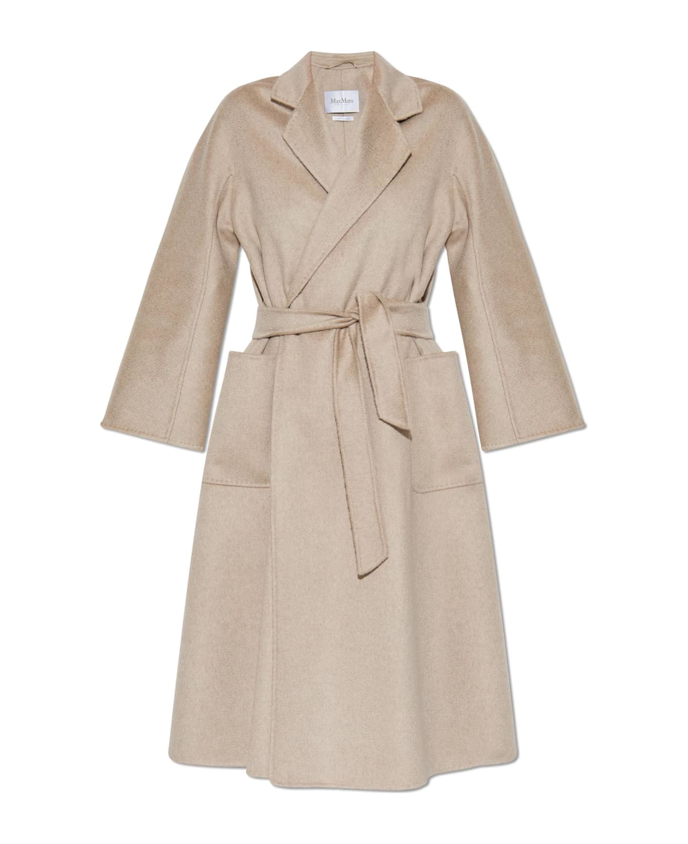 The Ludmilla Cashmere Coat by Max Mara embodies timeless sophistication and modern grace. Rendered in a warm beige hue, this iconic coat is crafted from plush, exceptionally soft cashmere, distinguished by its delicately smooth texture and refined appearance. Its elongated, relaxed silhouette is elegantly cinched at the waist with a matching self-tie belt, artfully accentuating the feminine form. The design features wide, classic notched lapels, understated straight sleeves that subtly flare toward the cuffs, and bold, oversized patch pockets each detail seamlessly harmonizing comfort with distinction. Devoid of extraneous embellishments or visible logos, the Ludmilla coat captivates through its purity of form and impeccable Italian tailoring, reaching gracefully below the knee. Why choose this product? Exceptional softness and warmth from pure cashmere Timeless design elevated by artisanal Italian craftsmanship Elegant, versatile silhouette that effortlessly complements any ensemble Functional statement pockets and easy, logo-free style Signature quality from the renowned Max Mara fashion house