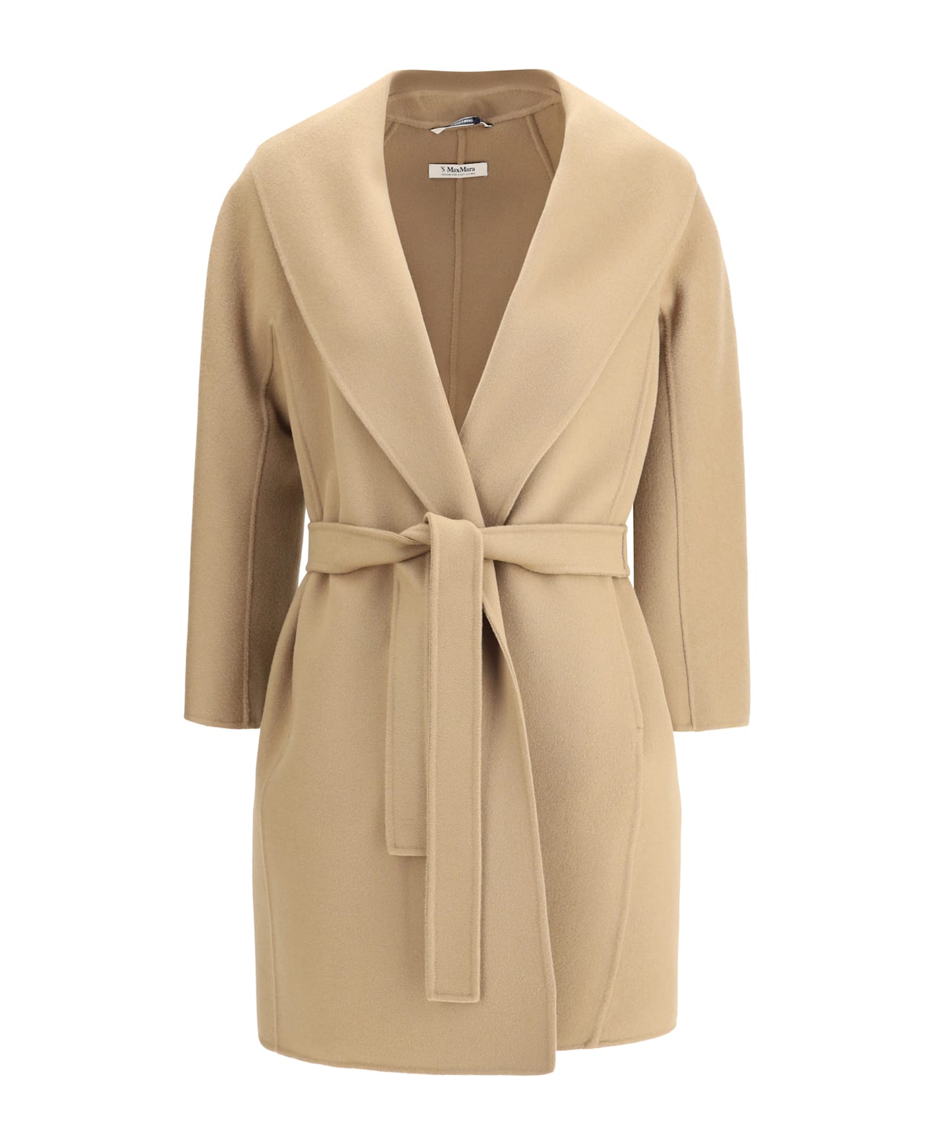 The messi coat by 's max mara is an elegant expression of sophisticated minimalism. crafted from pure virgin wool, it is designed to offer comfort and sophistication for any occasion. the soft silhouette is defined by a belt closure to tie at the waist, which naturally enhances the figure. shawl lapels add a touch of femininity to the essential design, complemented by practical pockets inserted in the seams and an unlined, light and enveloping construction. a timeless garment, ideal for a versatile and well-groomed wardrobe.