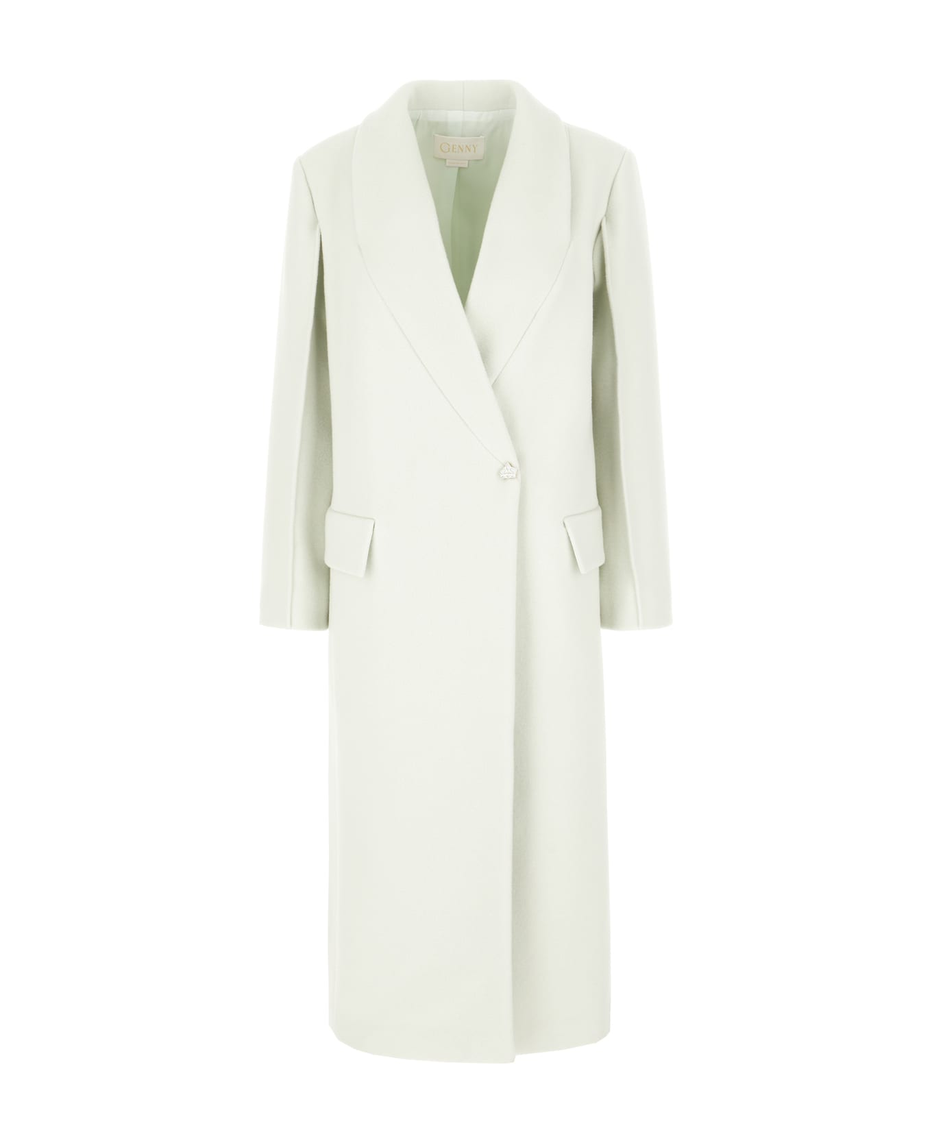 Coat realized in wool blend characterized by double-breasted closure by a jewel buttons. -Lapels -Two flap pocket at the front -Lined