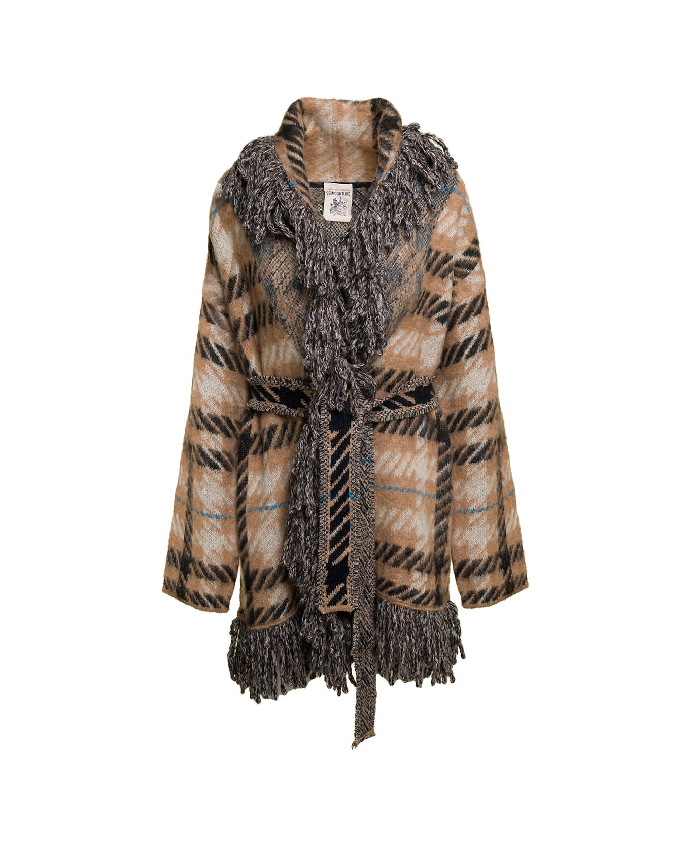 Multicolour 'intarsia' Cardigan With 'vichy' Pattern And Striped Belt In Wool Blend Woman