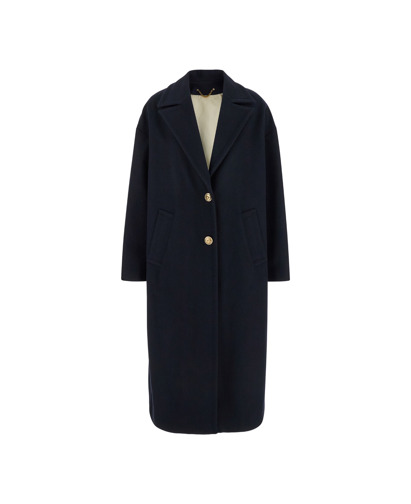 Coat Blue Single-breasted Notched revers Long sleeves Front button closure Jewel buttons Wool blend Oversize fit