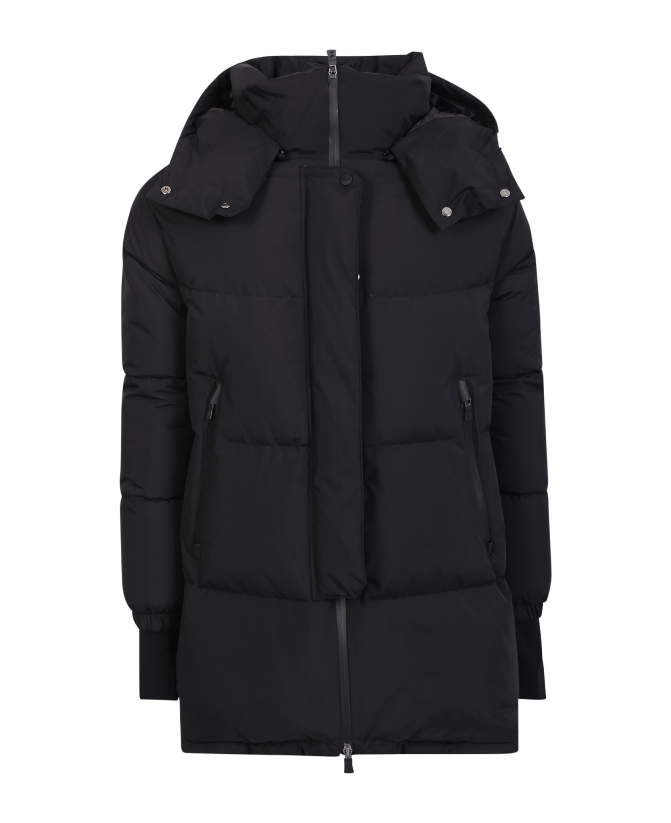 Front zip fastening. Detachable hood. Long sleeves. Side pockets. Quilted finish. Color: Black