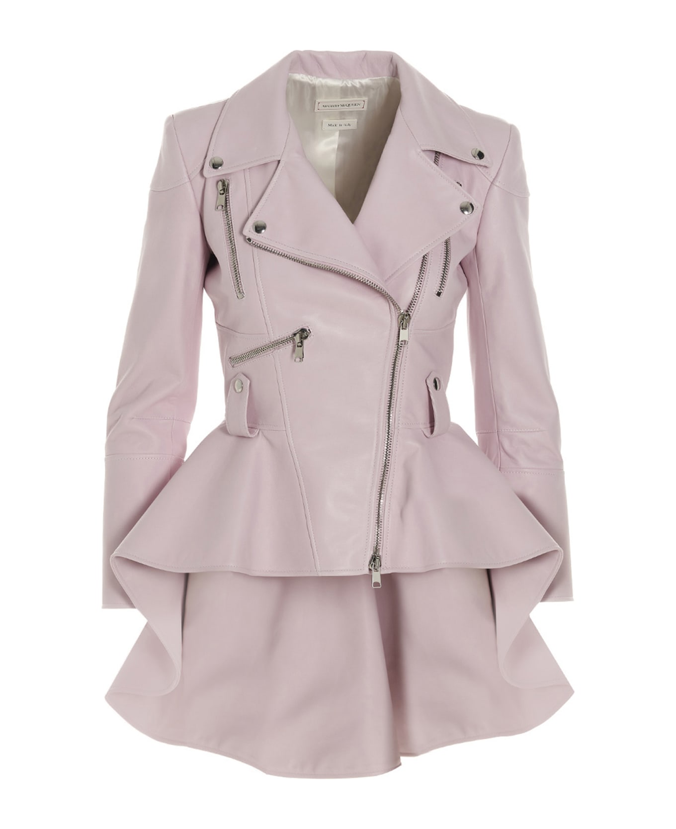 Leather jacket with 'Peplum' detail on the bottom, a zip closure, pockets and long sleeves. Composition: 100% lamb leather (Ovis Aries)
