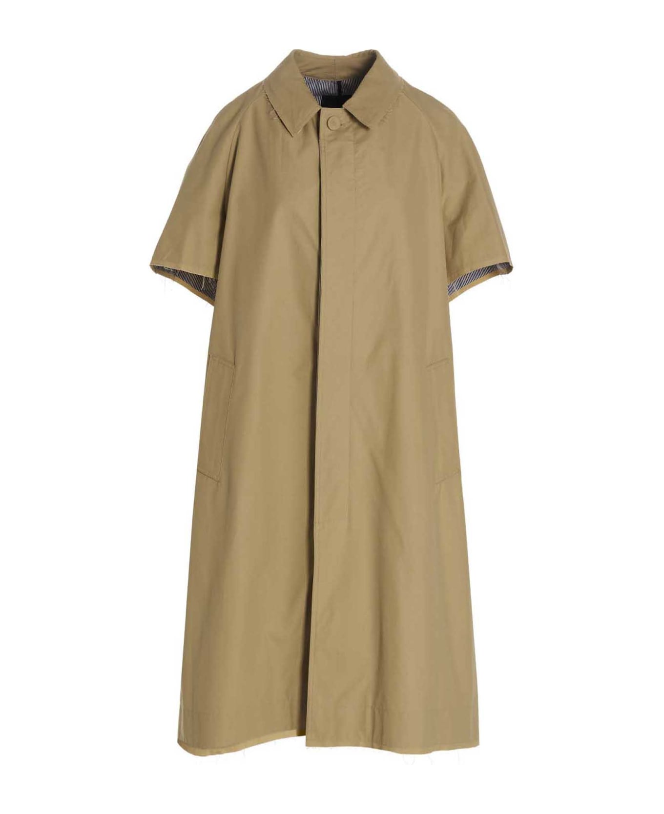 'Pull' cotton trench coat with striped knitted insert at the back, short sleeves, button closure and pockets.