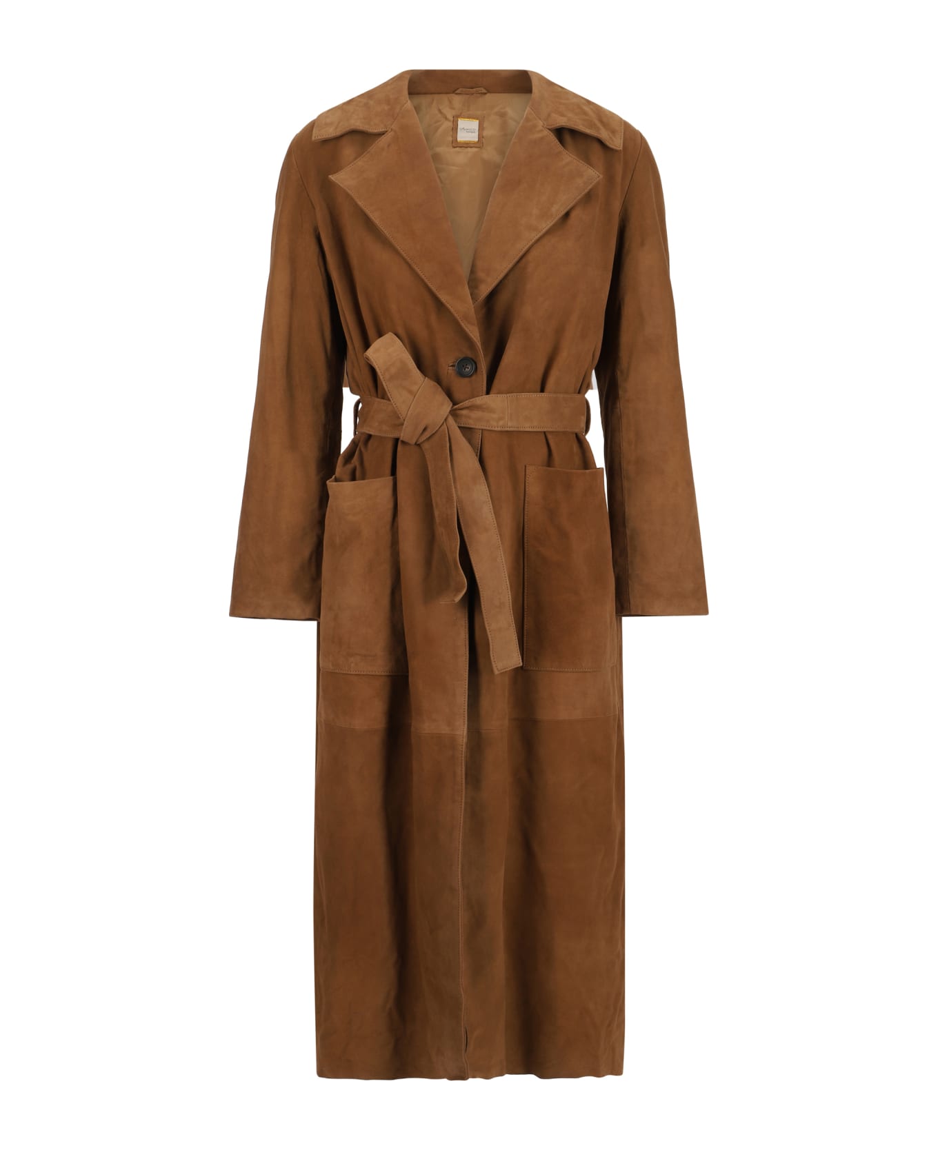 Rebecca leather coat by d'amico, classic lapels, front button closure, matching sash and knotted waistband, two front patch welt pockets, suede-effect leather design, regular fit.