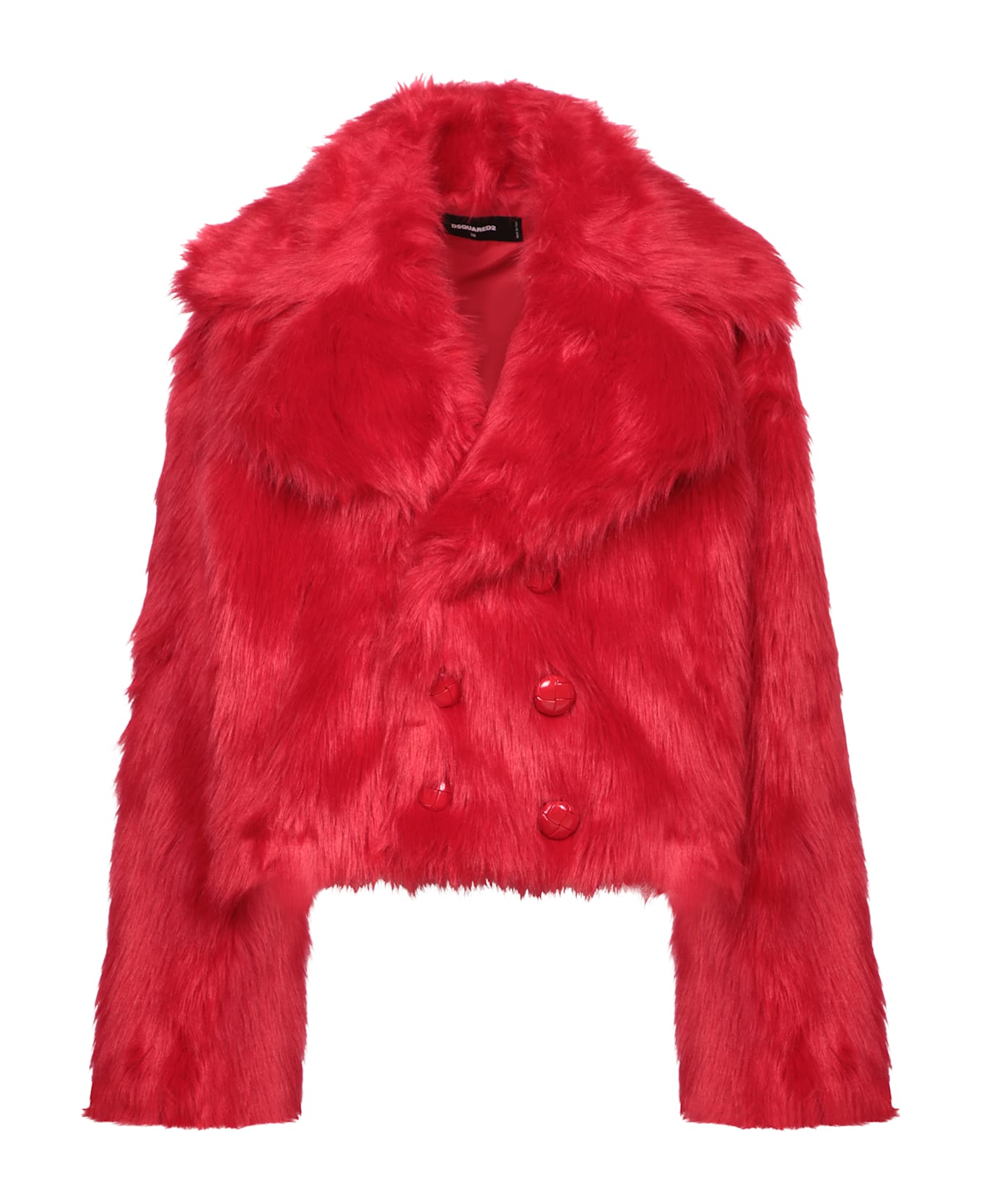 A standout in any winter wardrobe, this Dsquared2 faux fur coat is marked by its bold color and sophisticated detailing. Perfect for those looking to combine style with environmental responsibility.