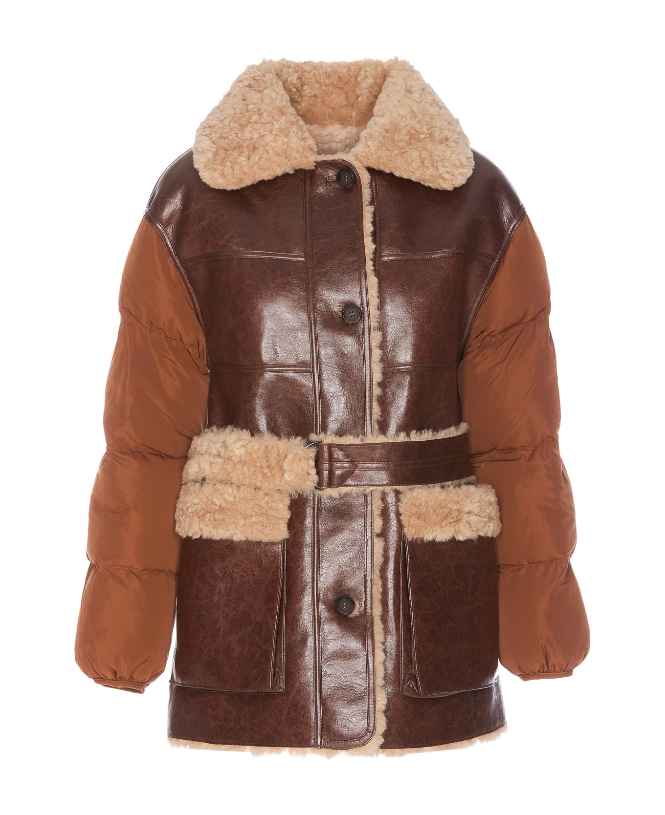 Urbancode reversible coat, one size faux fur model, one size teddy model, buttons closure, belt detail, padded sleeves Composition: 95% Polyester, 4% Elastane