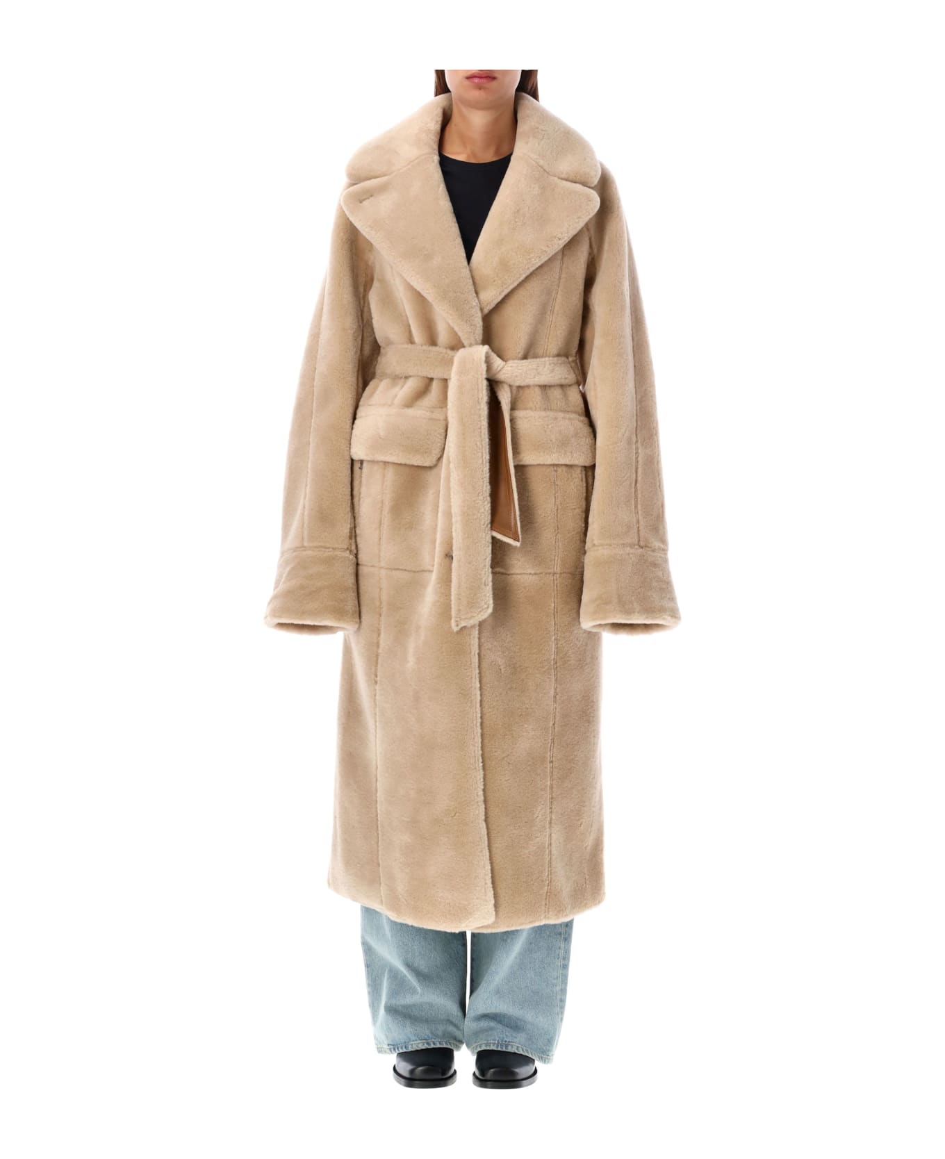 Reversible Long Coat By Urbancode. Featuring: Regular Fit Shearling Fabric Wide Lapel Collar Long Sleeves With Turn-up Cuffs Front Button Closure Waist Belt Long Length Model Is 1,72m And Wears Size S.