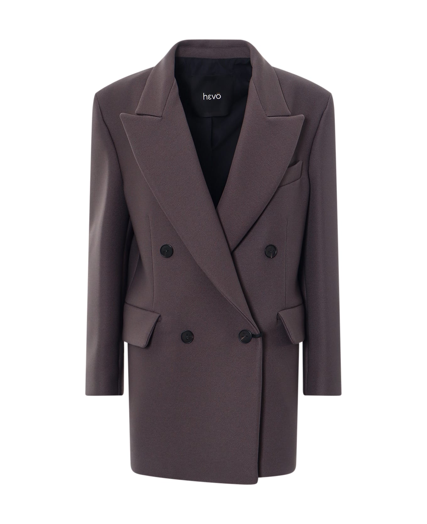 Diagonal fabric double-breasted coat