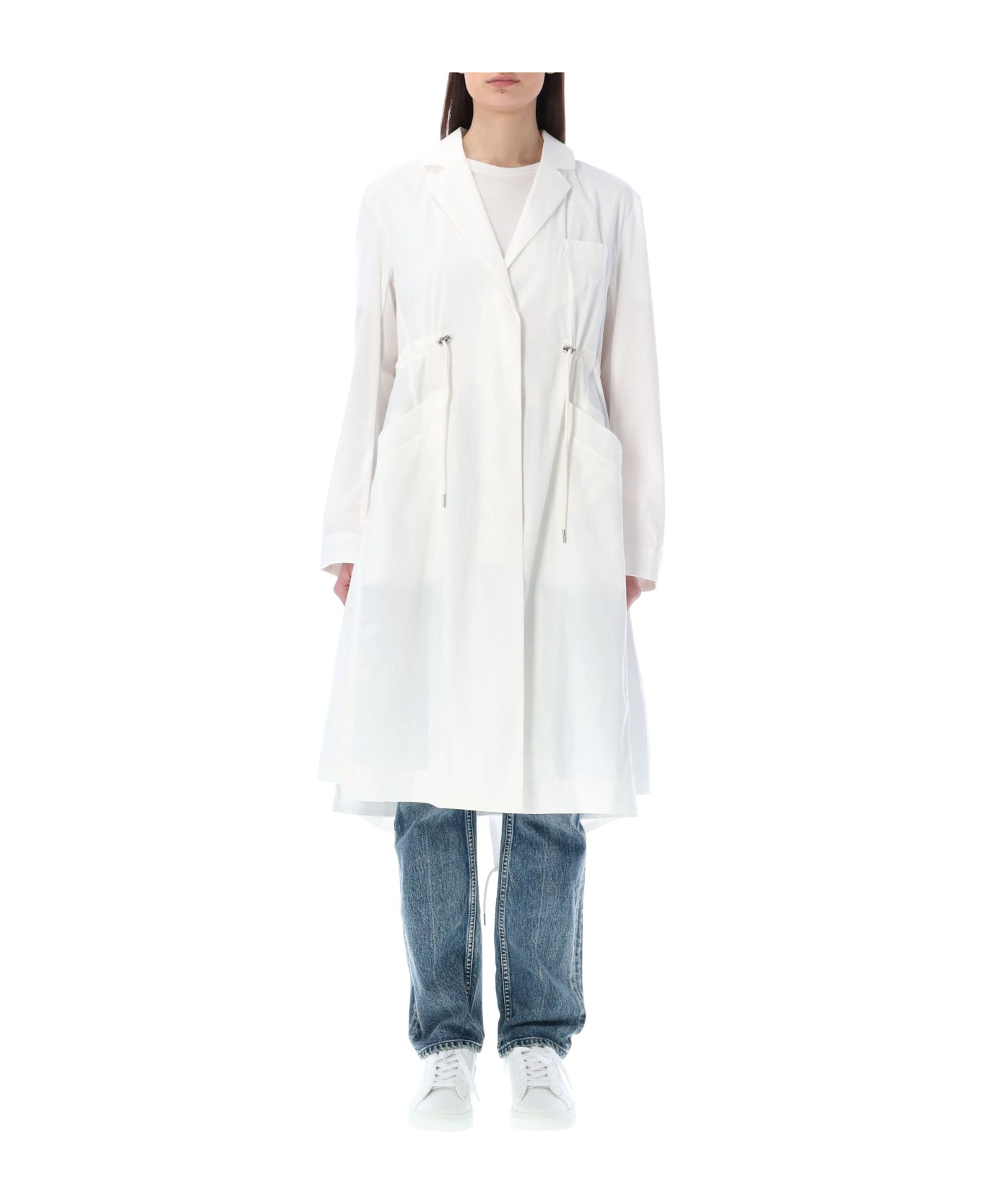 Sandcot Trench Coat By Add. Featuring: Water Repellent Matt Aspect Lightweight Fabric Notch Lapel Chest Pocket Patch Pockets Adjustable Drawstring Waist Long Sleeves Buttoned Strap At Cuffs Unlined Model Is 1,72 M Tall And She Is Wearing Size 40
