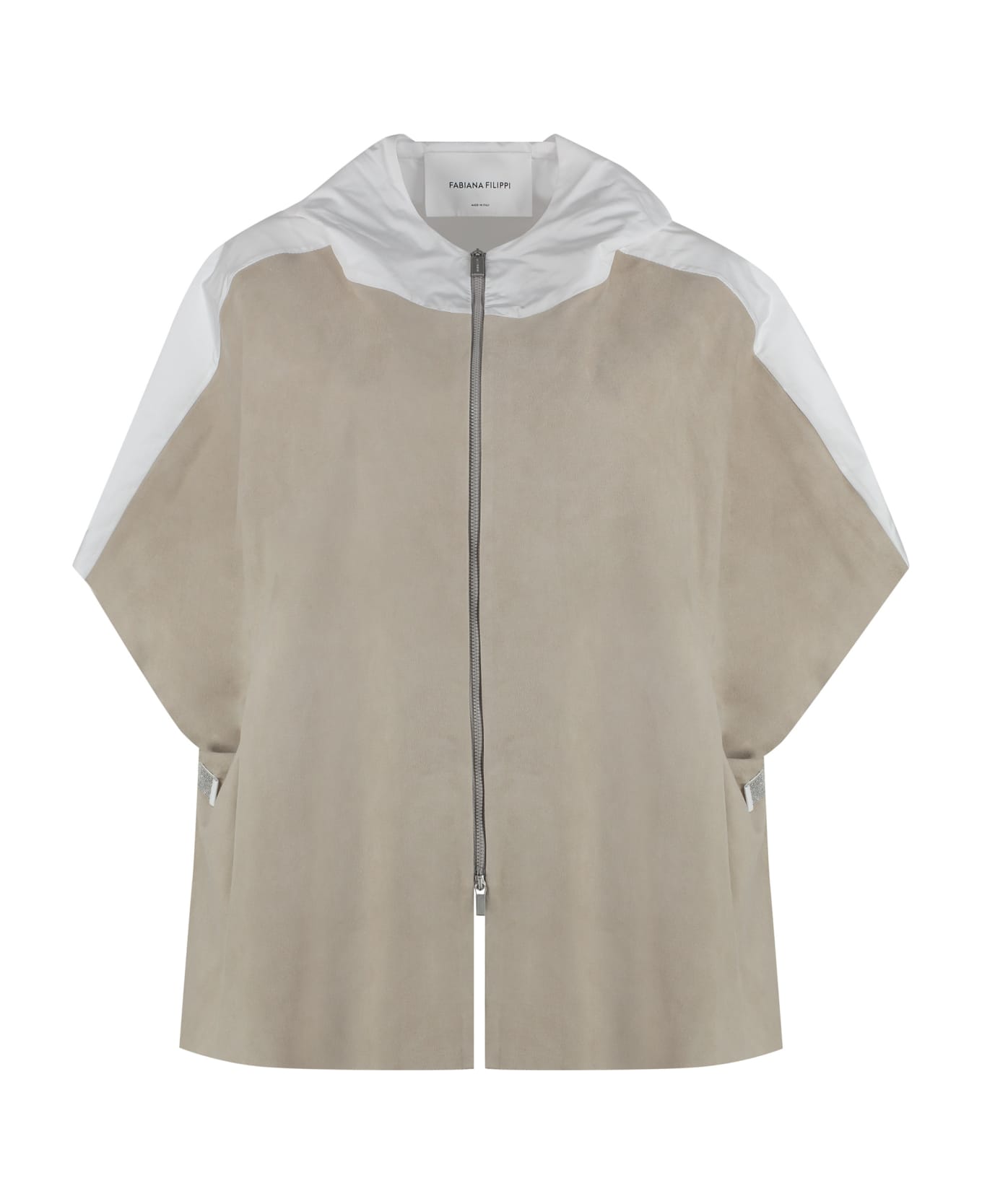 Hooded item contrasting back panel micro metal beads embroidery 100% chamois, 100% polyester Composition: 100% % Chamois, 100% % Polyester