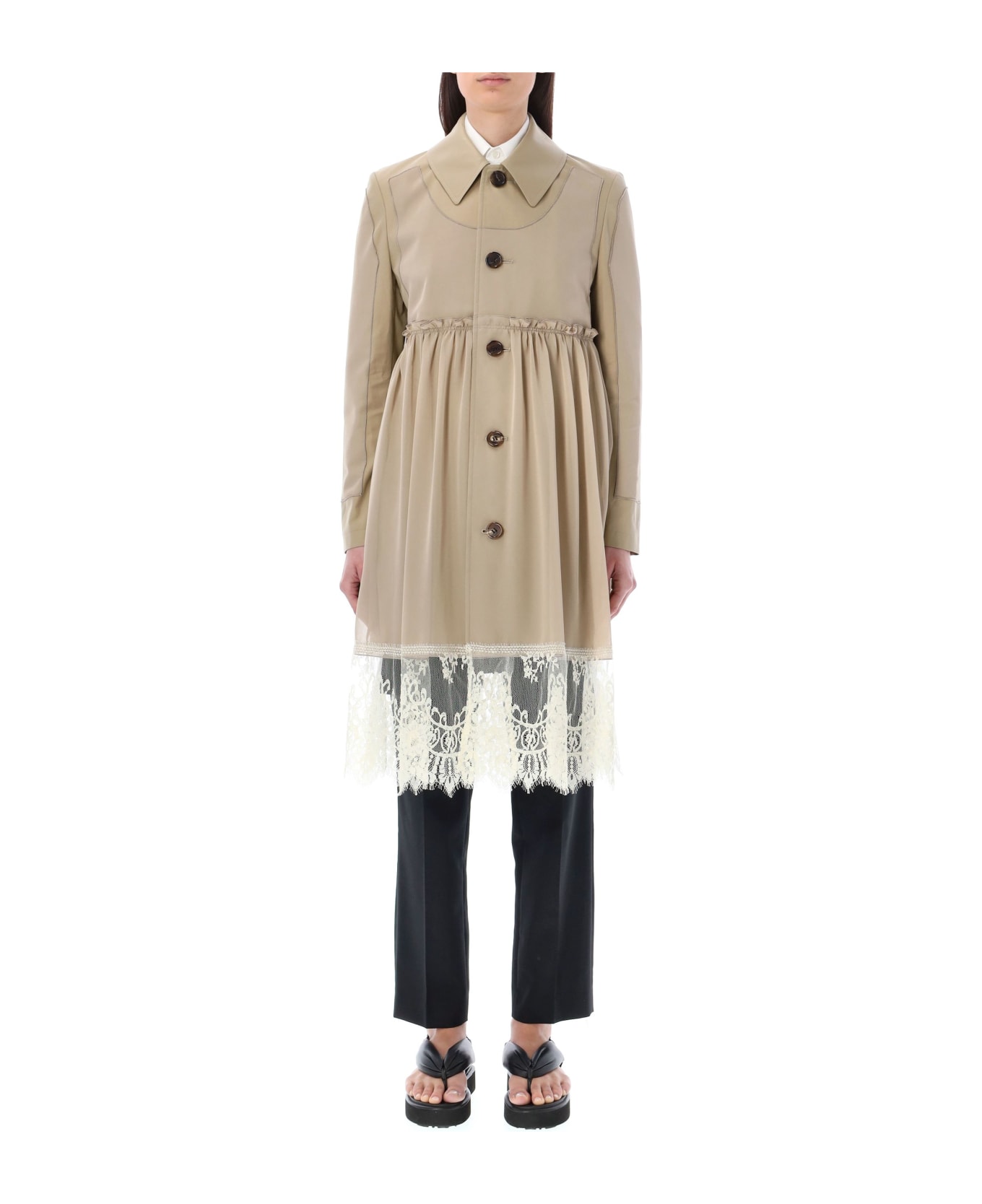 Cotton Trench Coat With Lace Panels By Undercover. Featuring: