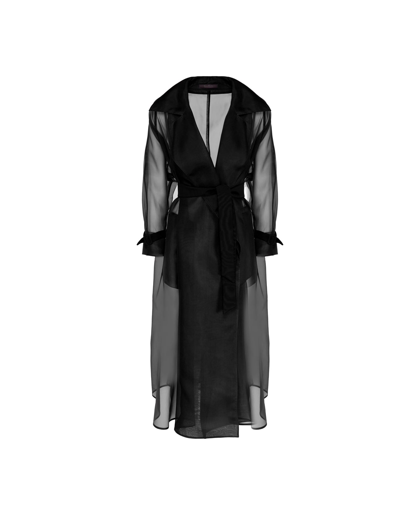 Black Trench Rauche In Silk from Max Mara -Trasparent silk trench -Ton sur ton belt to tie -Made in Italy -Colour: Black -100% Silk