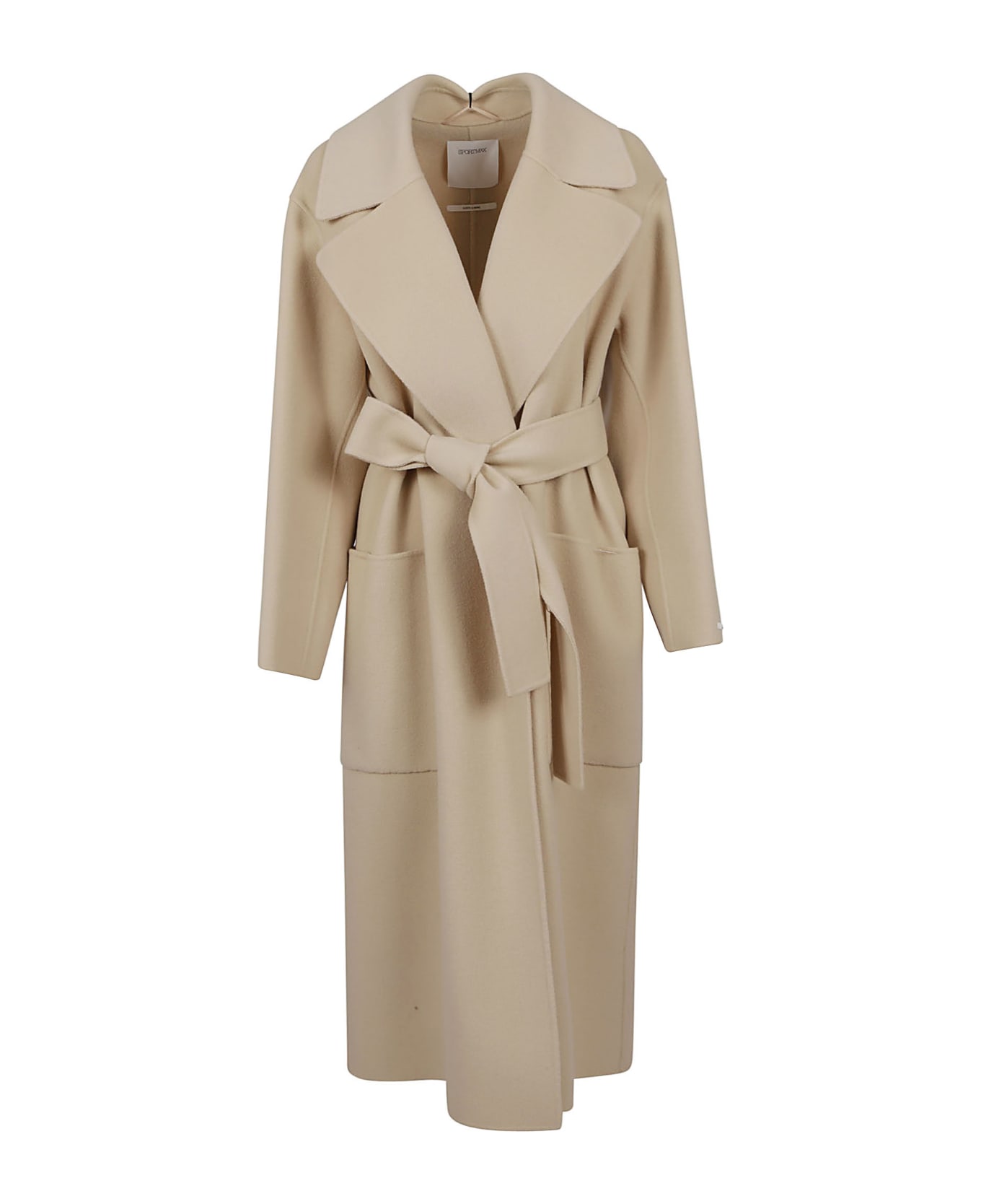 Belted coat in the same material with patch pockets