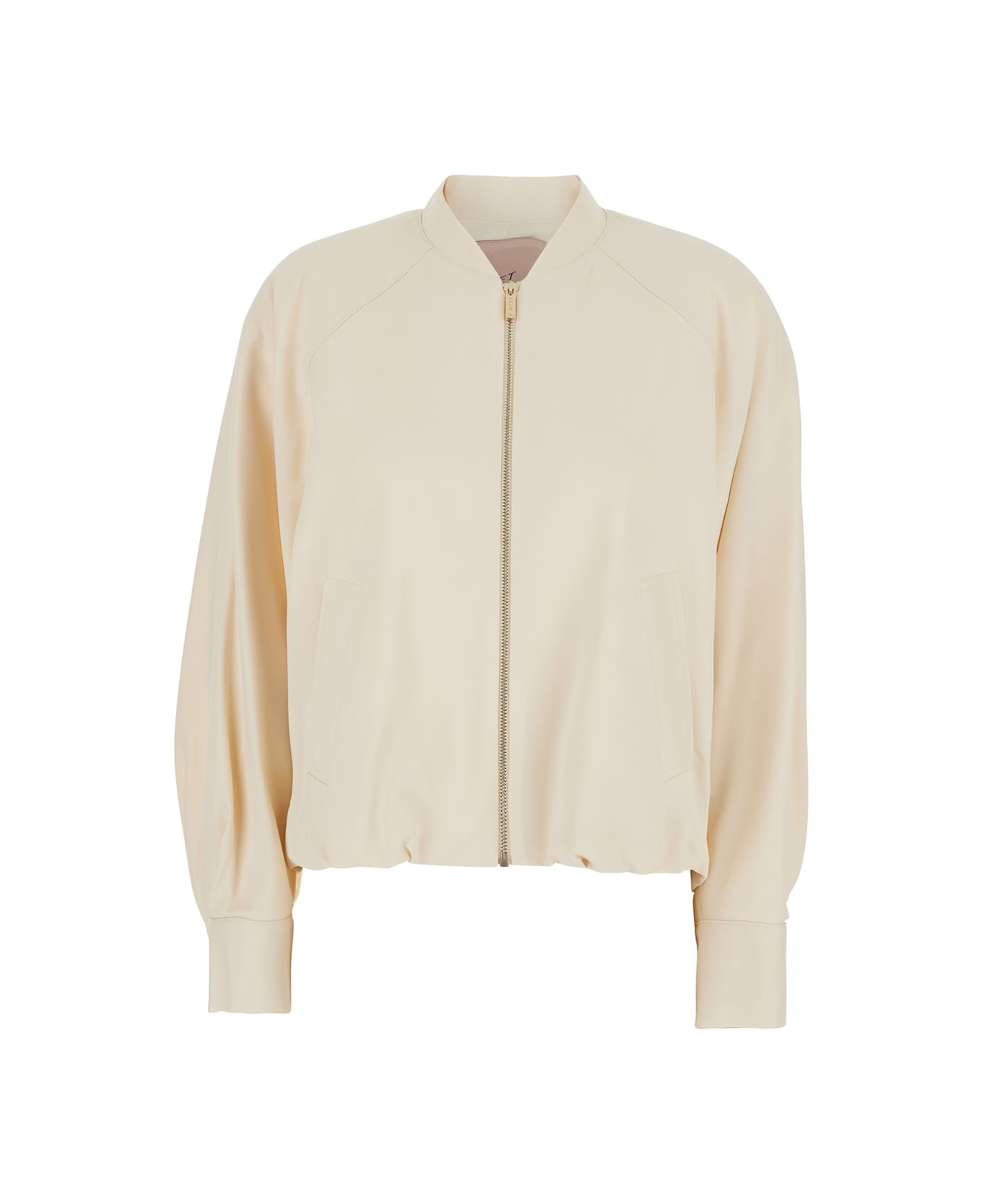 Jacket White Bomber collar Long sleeves Zip closure Two side pockets Logo patch on the back Buttoned cuffs Fabric blend Regular fit