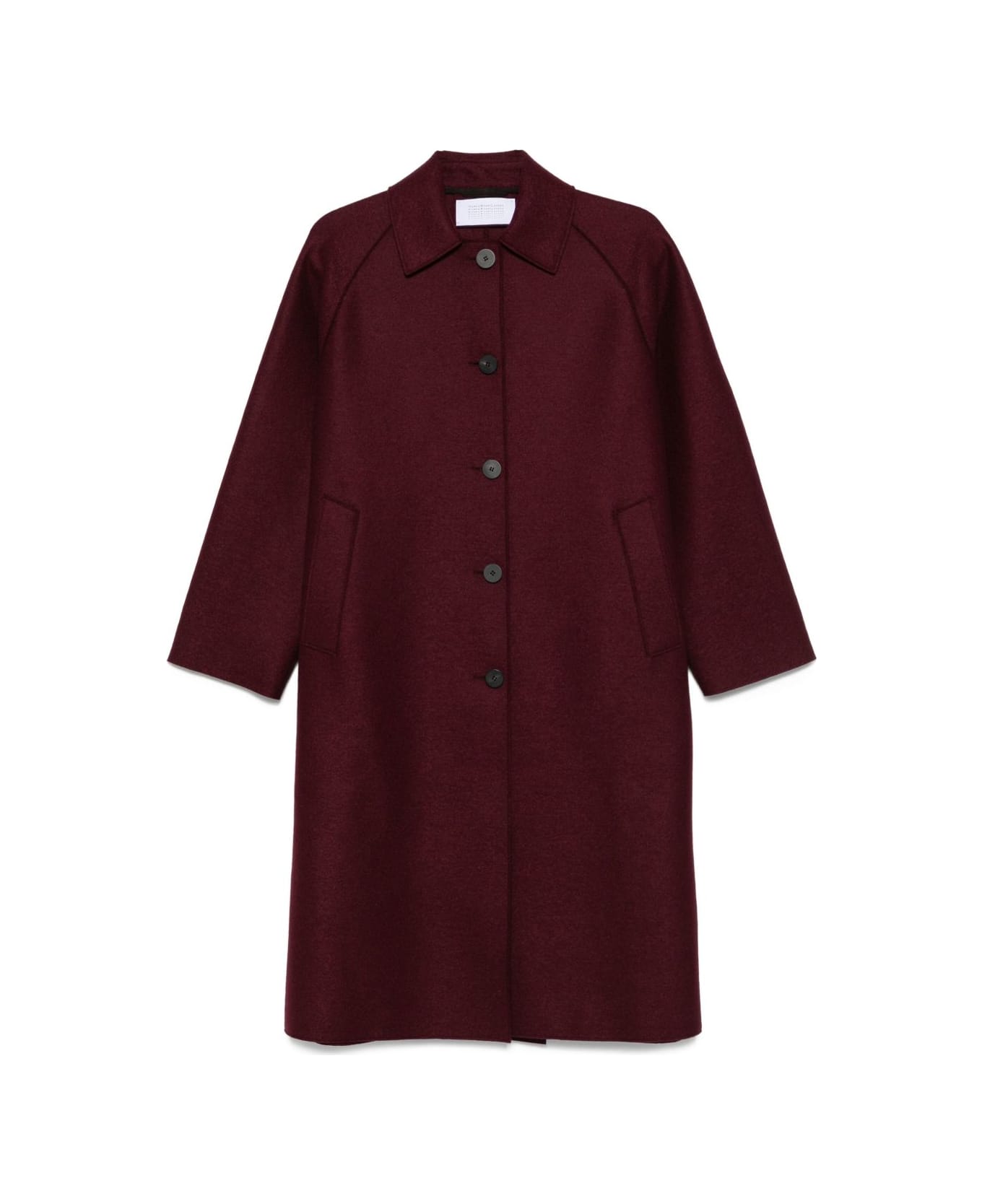 burgundy virgin wool button-front fastening welt pockets raglan sleeves straight hemline