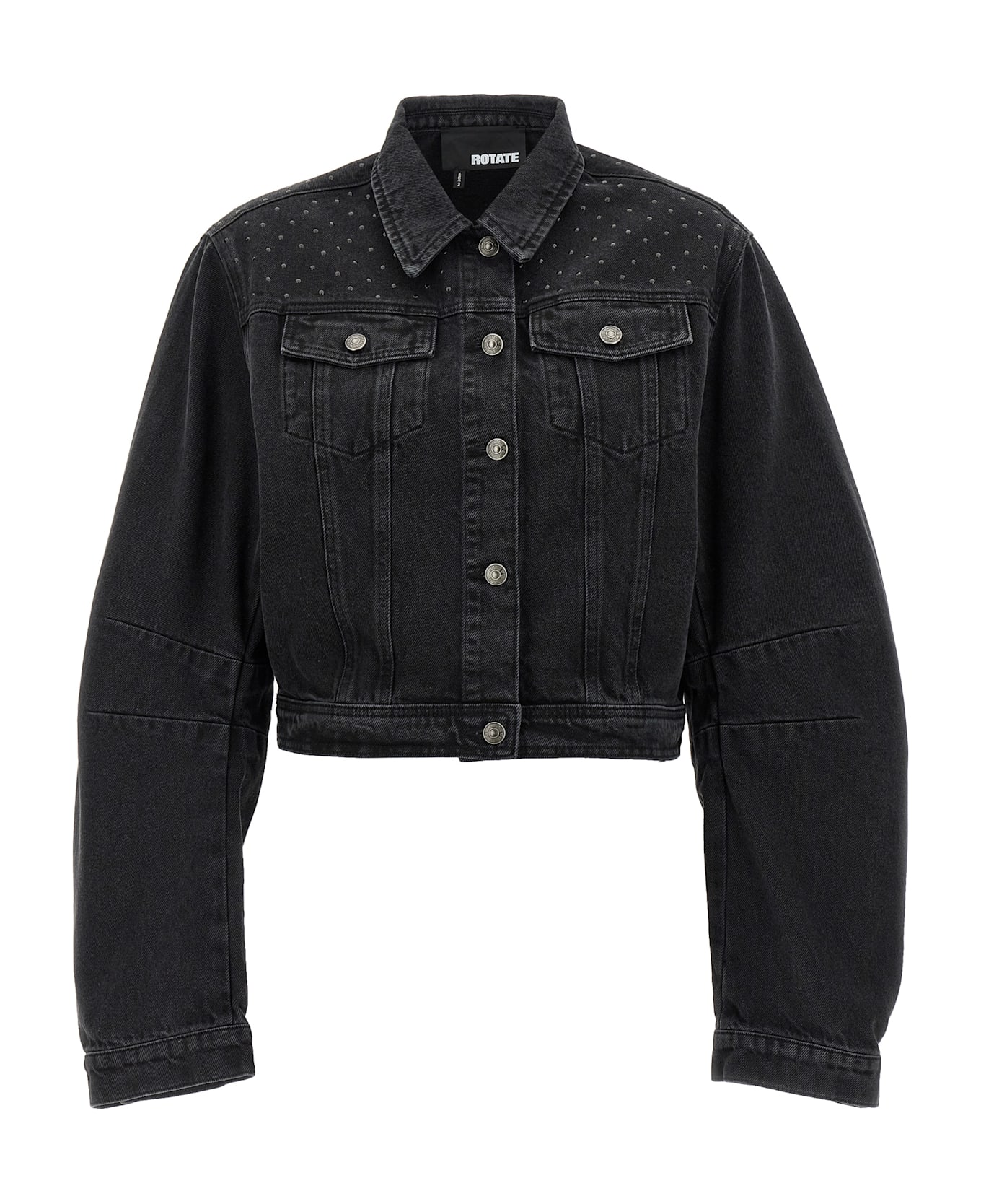 Denim Oversized' cotton denim jacket with tone-on-tone metal studs, crop style, front button closure, pockets, long cuffed sleeves and dropped shoulders. Composition: 100% cotton