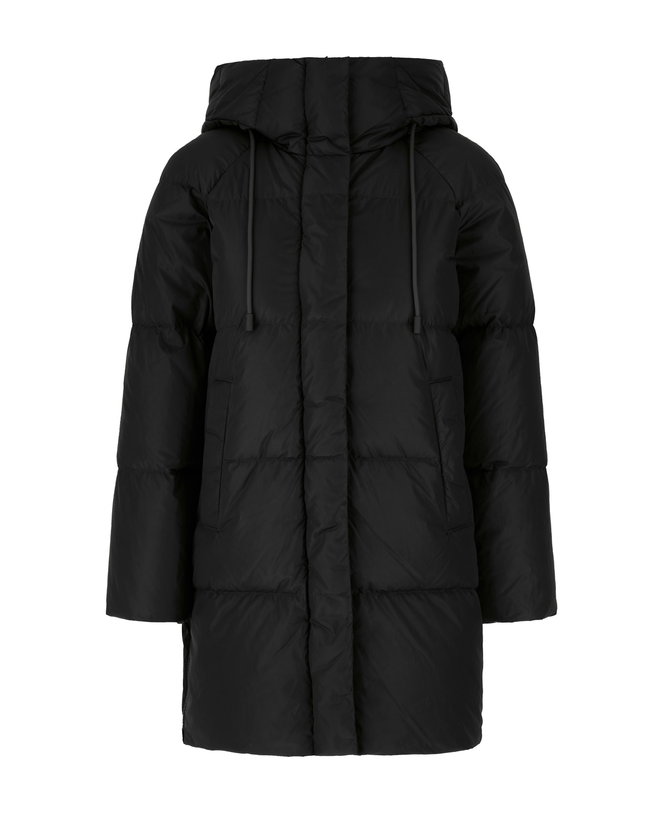 Down jacket realized in quilted nylon enriched by contrasting at the back. -Hood -Raglan sleeve -Concealed zip closure and snap buttons -Two slit pockets at the front -Zip on the sides -Lined interior with a patch pocket