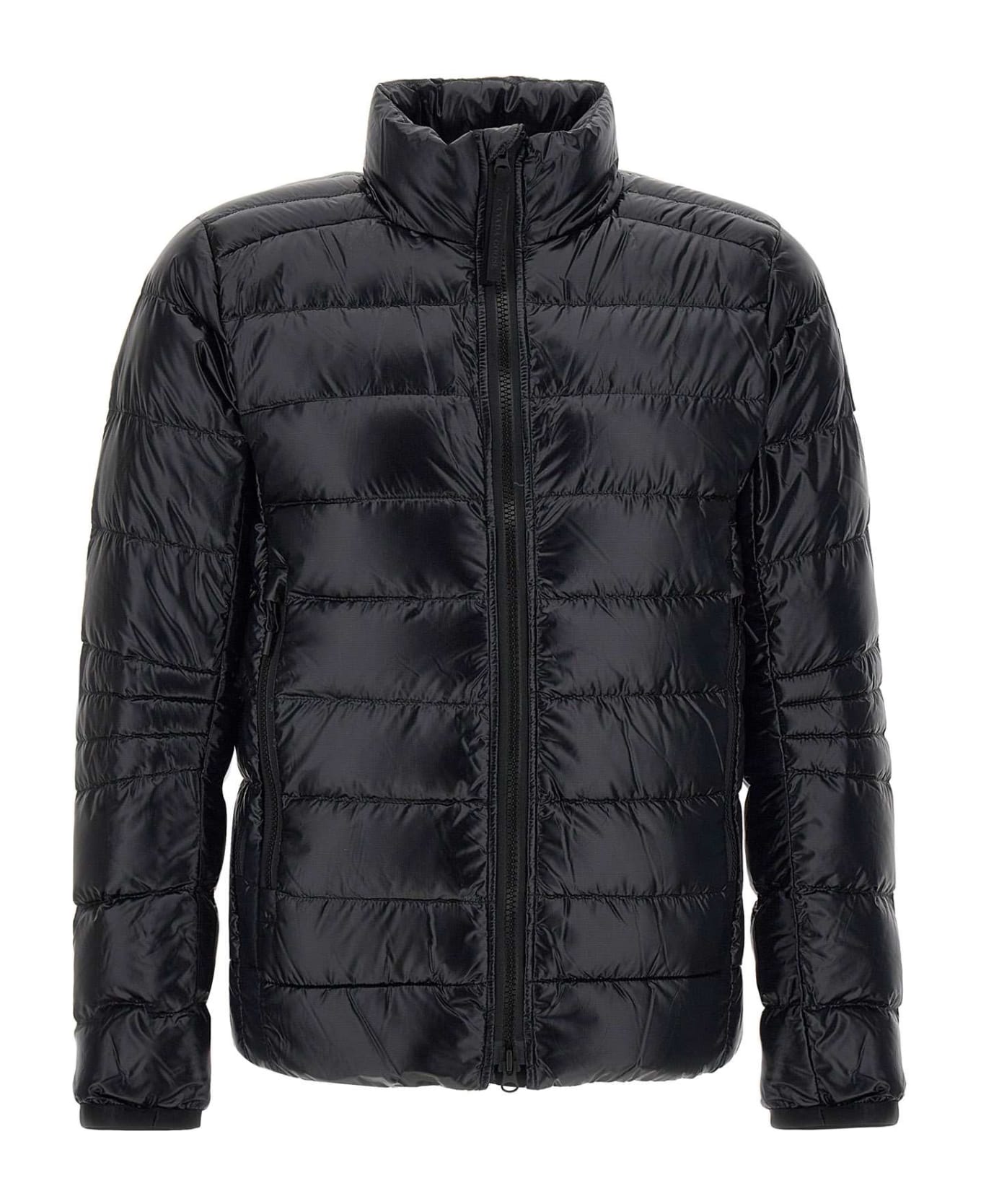 Canada Goose 'Crofton' men s down jacket, black, Ripstop nylon, windproof, water repellent, super light, high collar with reflective details, front zip fastening with double-slider logo, two side pockets with zip , removable elastic inner backpack straps to carry garment over shoulder, iconic logo patch matching left sleeve, cuffs in Power Stretch for added protection from cold, inside pocket, straight cut with regular fit, ideal garment in high and low season. Every Canada Goose product purchased from an authorized retailer has a lifetime warranty against defects in material and workmanship for entire life of product.