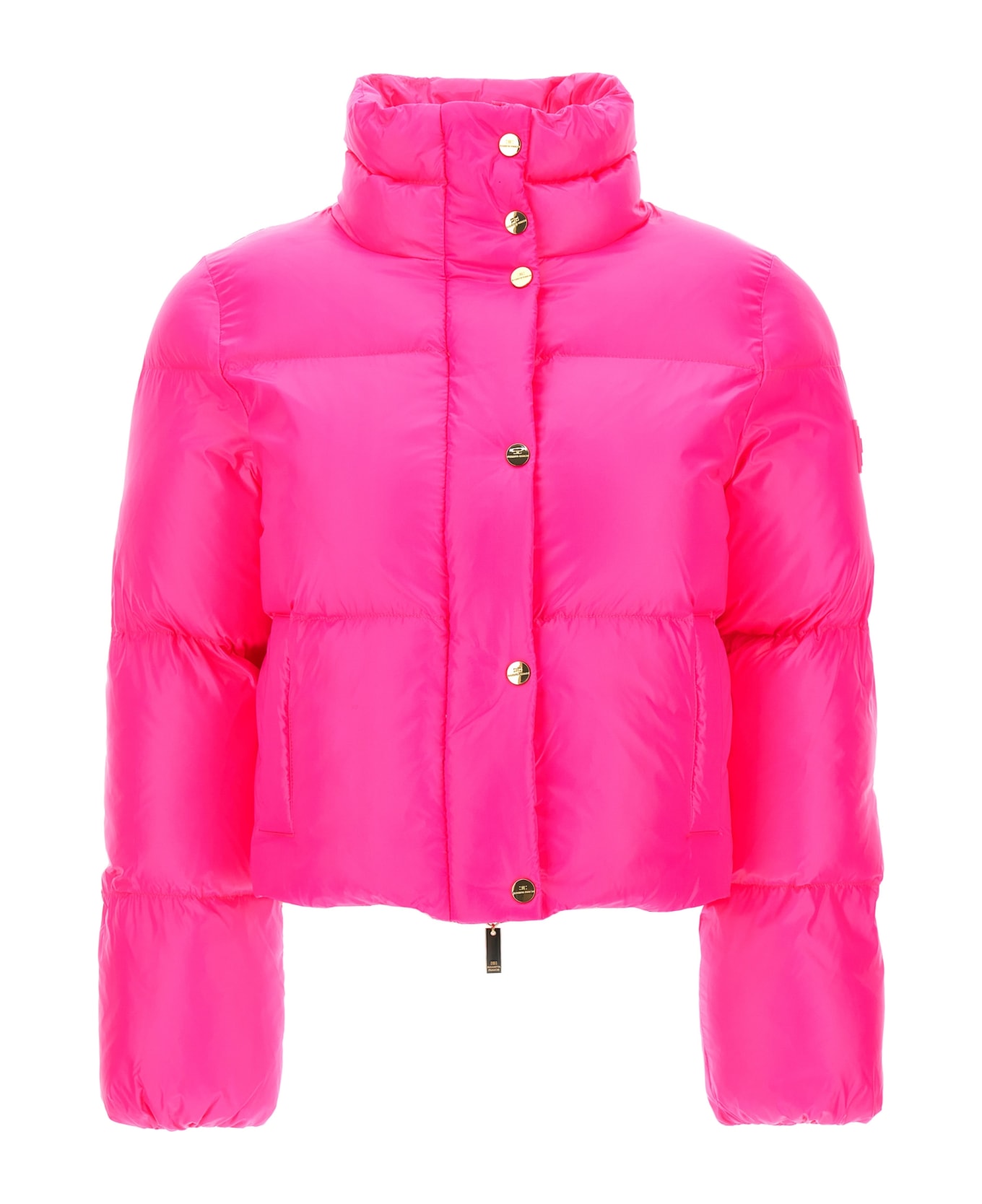 Cropped down jacket in padded sail fabric, high neck, long sleeves with elastic cuffs, pockets, zip and button closure.