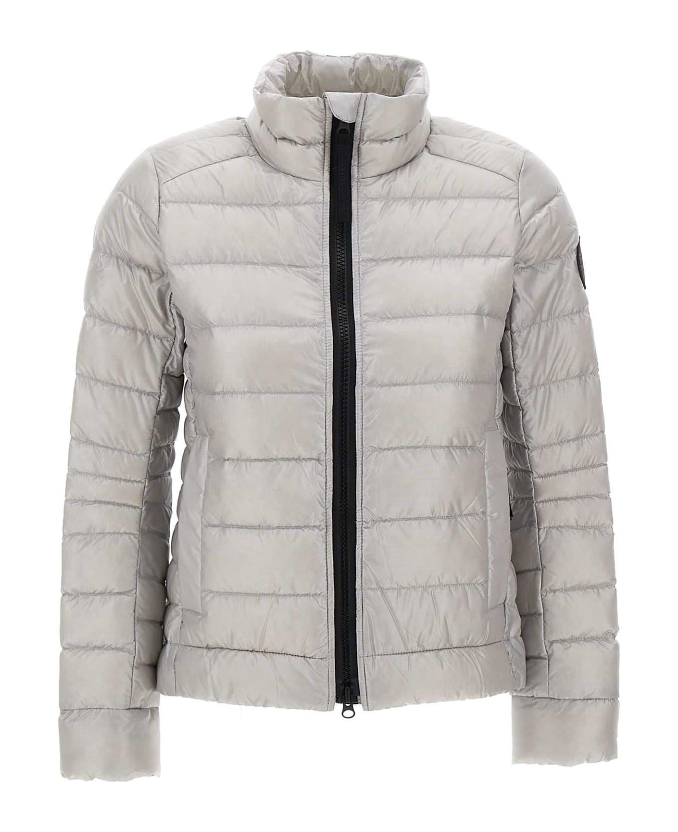 Women s down jacket Canada Goose "Cypress Jacket", ice grey, coiled effect, in Ripstop nylon, windproof, water repellent, super light, padded collar with reflective details, front zip fastening with double slider logo, two side pockets with hidden zip, foldable inner pocket, removable elastic inner backpack straps to carry garment on shoulder, iconic logo patch on left sleeve, cuffs in Power Stretch for greater protection from cold, an internal pocket, regular fit with light sidecut on sides, ideal in high and low season. Every Canada Goose product purchased from an authorized retailer has a lifetime warranty against defects in material and workmanship for the entire life of product.