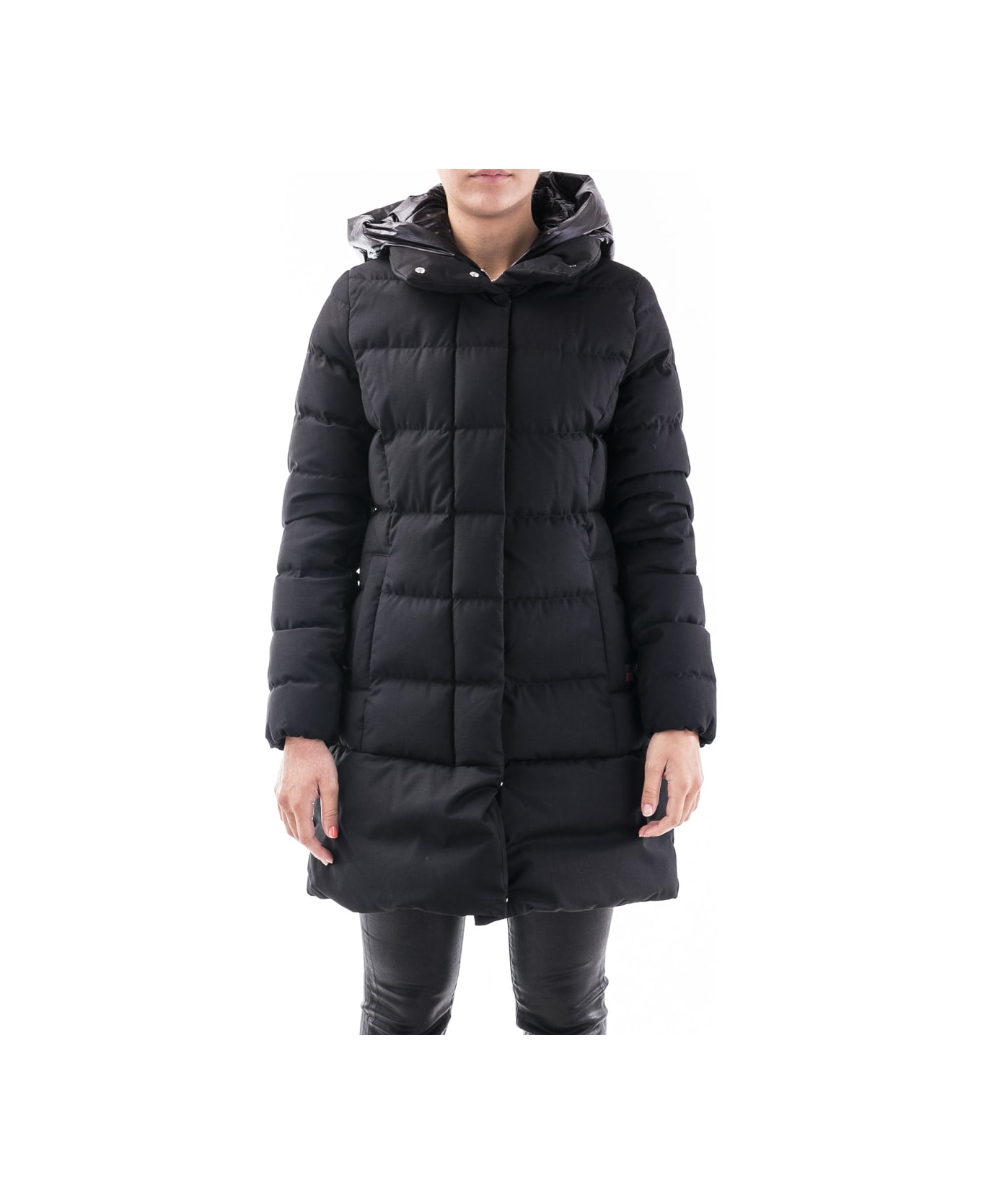 Woolrich Down Jacket: high collar detachable hood front zip and snap button fastening detachable bib two side snap button pockets two internal pockets