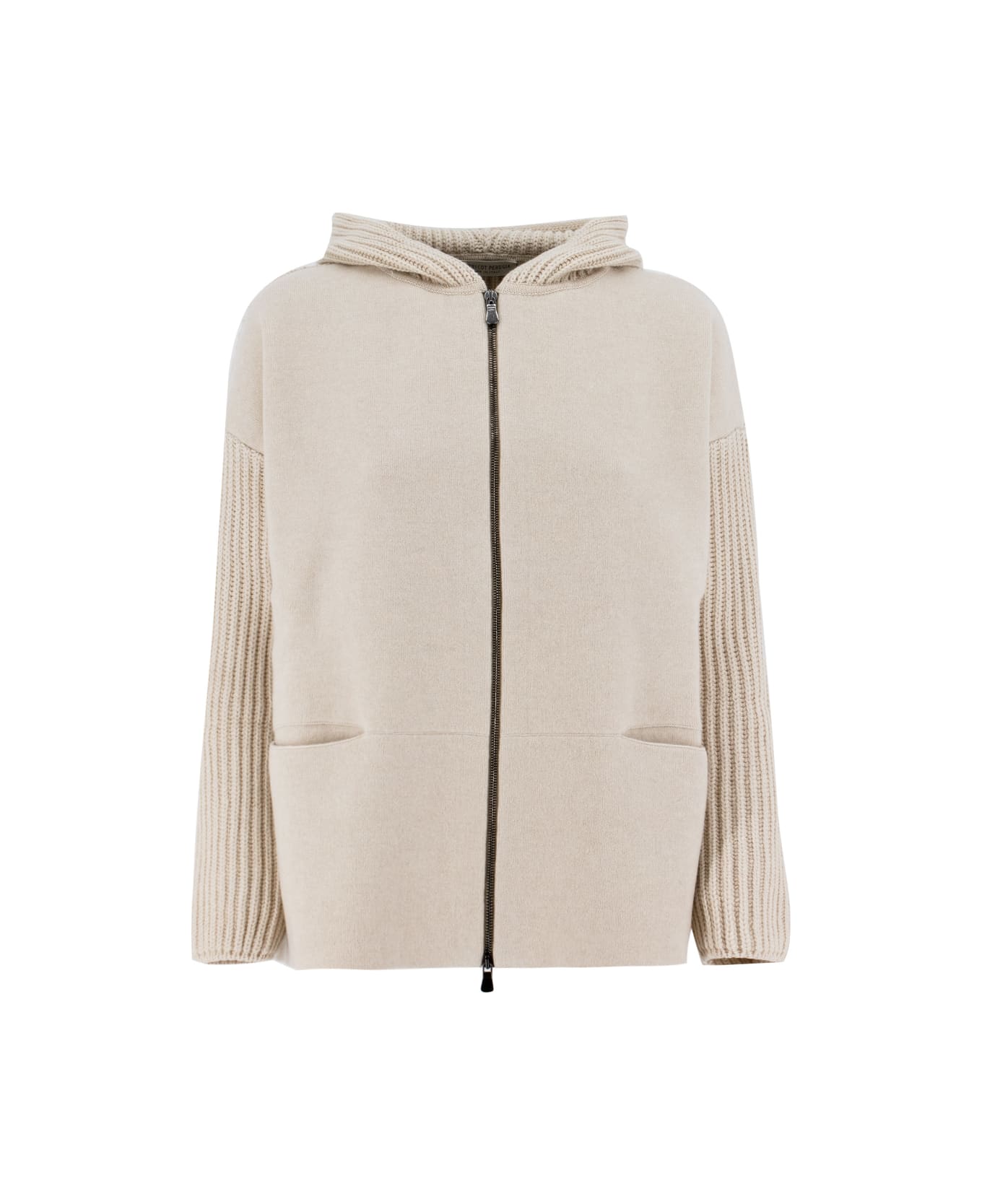 Jacket made of a precious blend of wool, silk and cashmere, characterised by the two different processes, two way zip fastening, hood, two front pockets, regular fit.