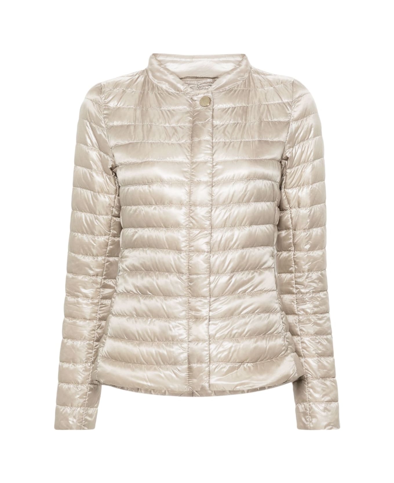 ecru feather down padded design quilted water-repellent finish logo-engraved gold-tone hardware baseball collar concealed front press-stud and zip fastening long sleeves two side zip-fastening pockets straight hem quilted lining Composition: Polyamide, 100%