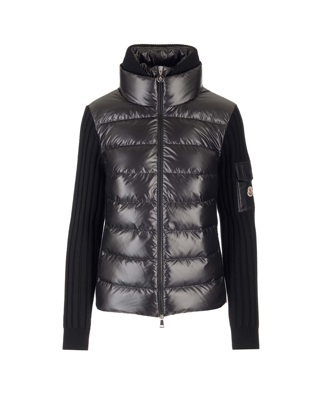 Padded cardigan in ultra fine merino wool knit from Moncler, with padded nylon front panel and collar, high collar, front zip. Standard fit.