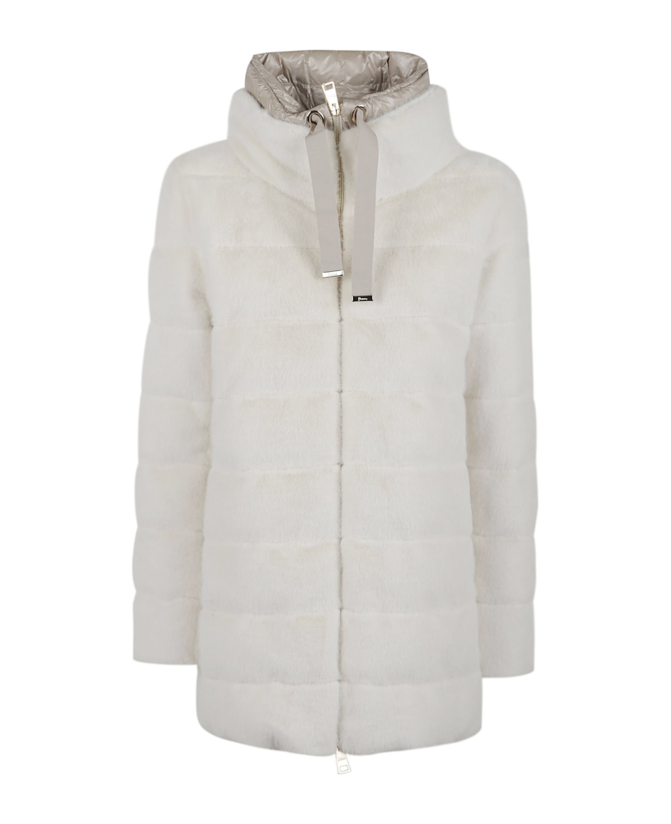 High collar; two-way zip closure; interior lined with iconic Ultralight Nylon, down padding; regular fit. Featuring short, shaved fur with a soft, enveloping feel and a maxi grosgrain drawstring.
