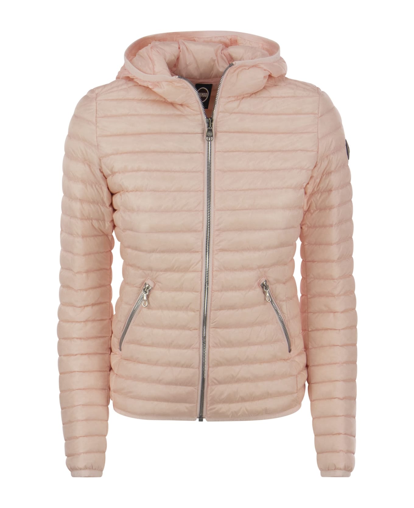 Women's jacket with fixed hood, in super-light fabric with water-repellent treatment and padded with light natural down. Comfortable and practical side pockets, elastic border in the same tone on cuffs, hem and hood, and slightly loose fit. These are the details that make the garment feminine without detracting from Colmar's sporty soul. - Zip closure - Side pockets with zip - Fixed hood - Elastic tape on cuffs, hood and hem - Lightweight natural down filling - Water repellent treatment - Colmar Originals logo on left sleeve DESIGNER ID: 2224 9VX 581