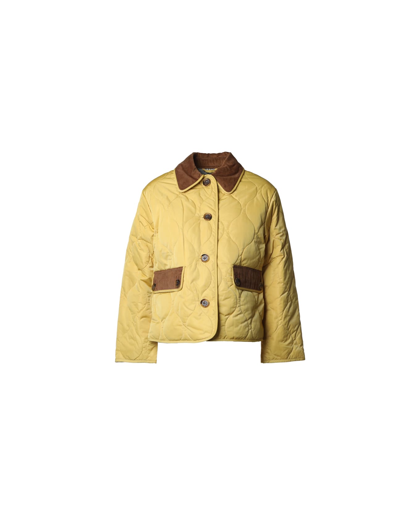 Yellow heritage Quilted Jacket from Barbour -Quilted jacket -Quilted fabric in diamond -Corduroy collar -Button closure -Two pockets on the front -The size shown in the picture is a 8 -Colour: Yellow Heritage -100% cotton