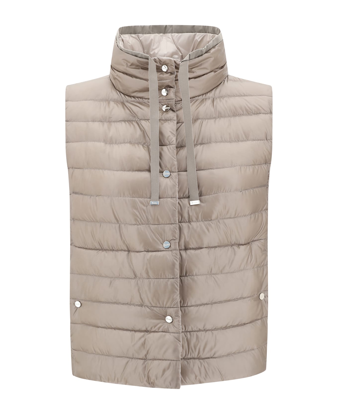 Herno's reversible padded vest is a stylish and practical garment perfect for colder days. the adjustable drawstring high collar offers protection and comfort, while the front snap closure ensures a secure fit. the two buttoned welt side pockets add a touch of functionality and style. the padded, quilted design gives the vest a modern look and extra warmth, making it ideal for completing casual-chic looks without sacrificing practicality.