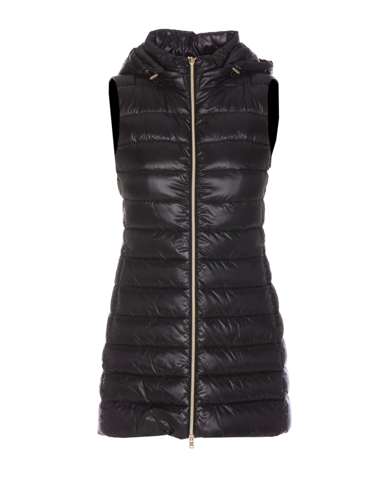 Herno black down jacket Serena down jacket, frontal zip closure, sleeveless, hood detail, lateral zip pockets, light padded Composition: 100% Polyamide, 90% Goose Down, 10% Goose Feather