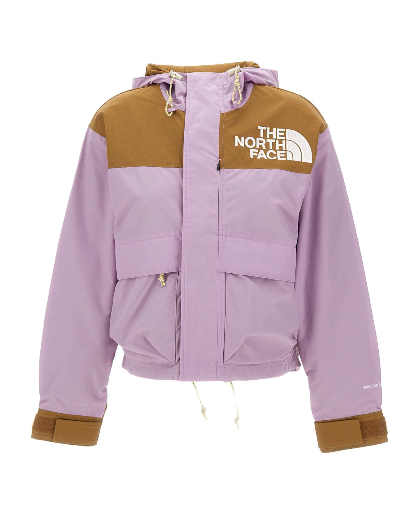 The North Face "86 Low-Fi Hi-Tek Mountain" women's jacket highly breathable WindWall fabric, two-tone lilac and sand beige, hood with drawstring,