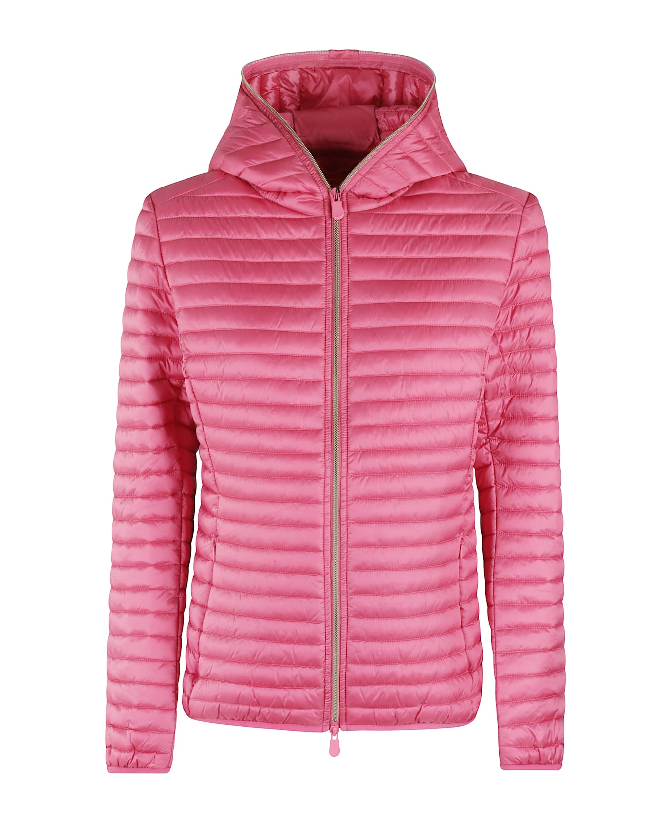 Alexa jacket - Save The Duck - Pink color - Quilted nylon weave - Full zipper hood - Long sleeve with elasticized cuff - Rubber logo patch applied to left sleeve - Flush side pockets with zipper - Front two-way zipper closure - Regular fit