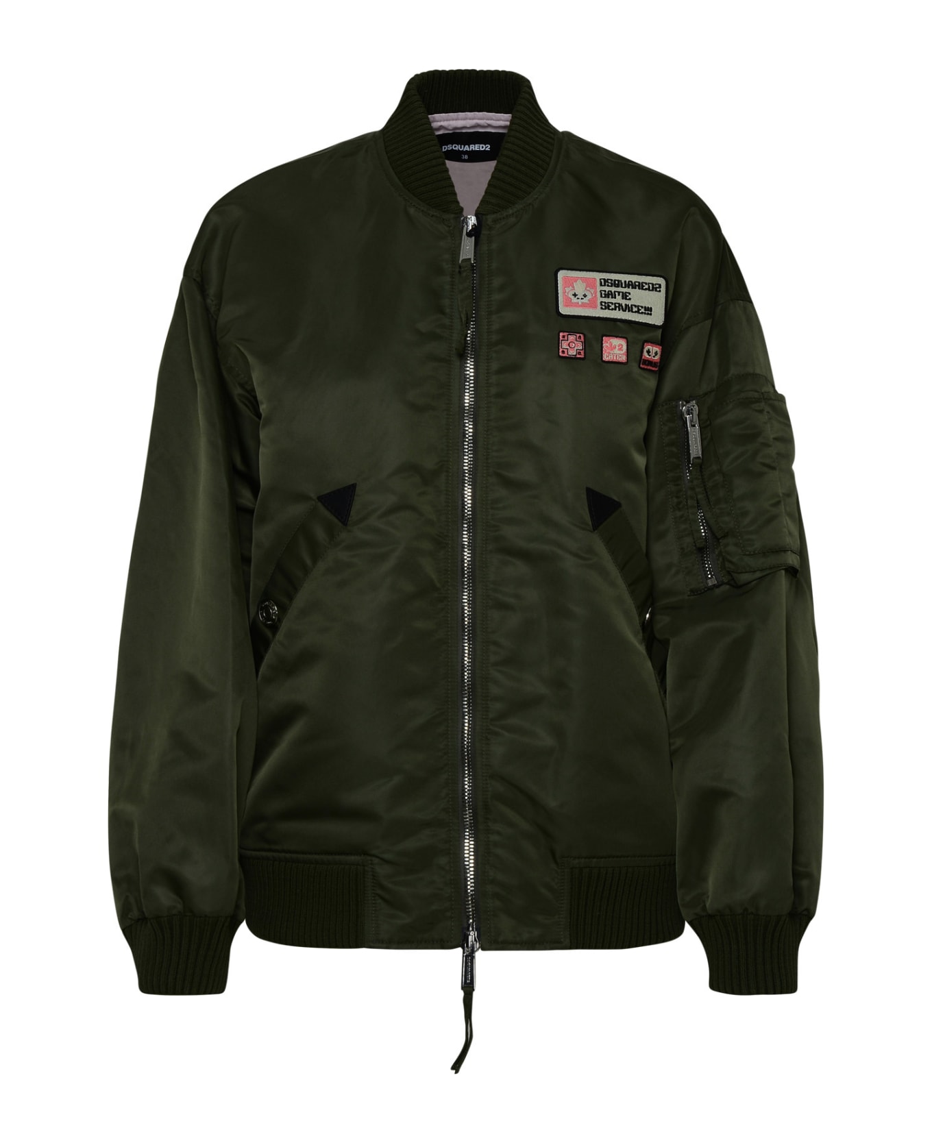 Ribbed round neck, logo patch and maxi pockets with buttons on the front, zipper pocket on the sleeve, and ribbed cuffs and hem