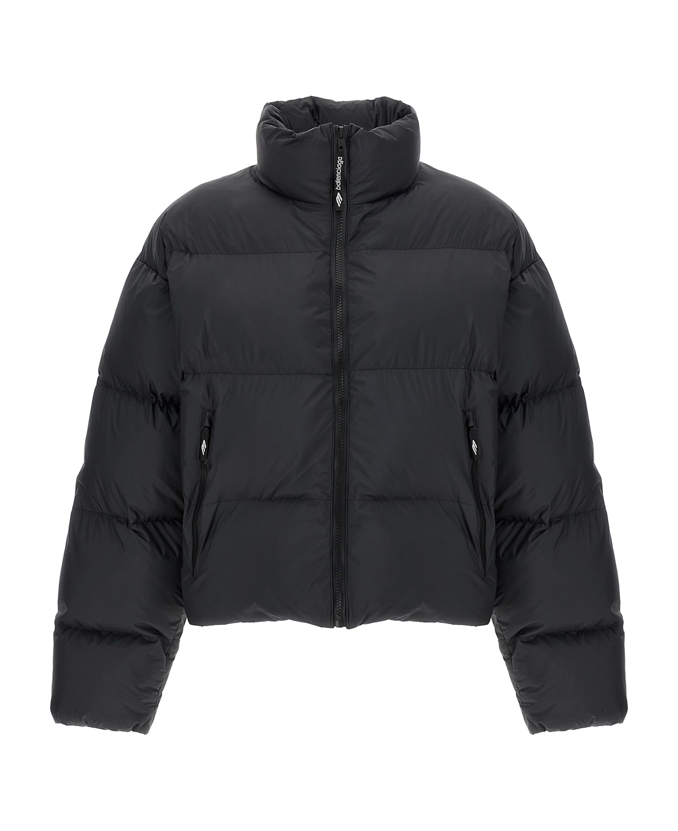 Down jacket in technical fabric, cropped model, logo embroidery, standing collar, zip closure, pockets, long sleeves with elastic cuffs, internal windproof gaiter, drawstring on the hem.