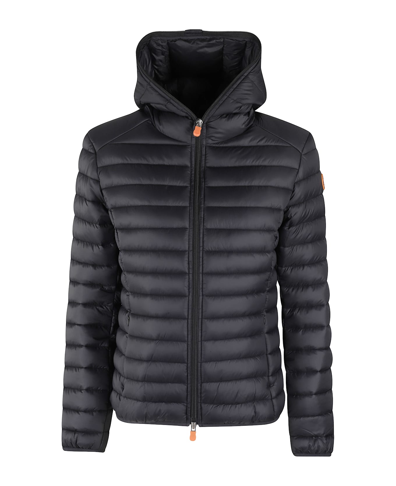 Daisy down jacket - Save The Duck - Black color - Quilted nylon fabric - Hood - Long sleeve with elasticized cuff - Silicone logo applique on left sleeve - Flush side zippered pockets - Front zippered closure - Fitted fit.