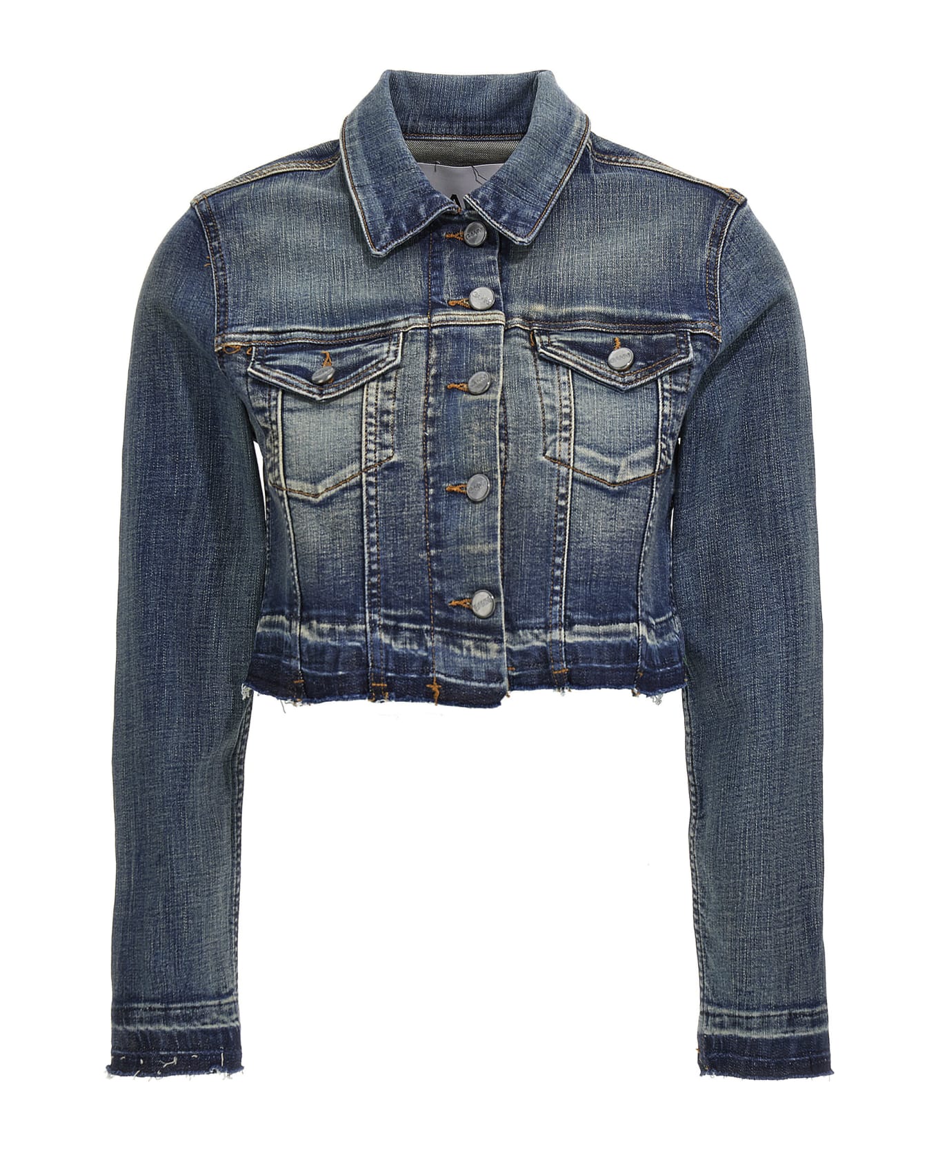 Cotton denim cropped jacket with frayed hem detail, a button closure, chest pockets, and long cuffed sleeves. : This product is made in organic cotton. Composition: 98% organic cotton 2% elastane