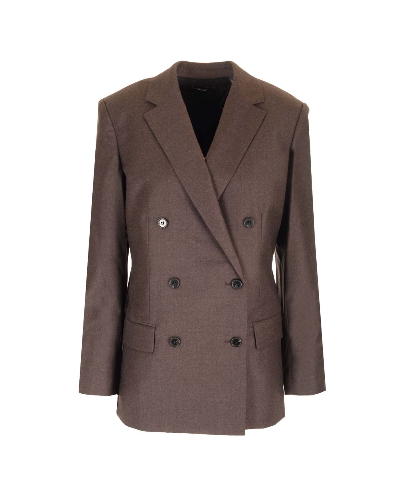 Double-breasted blazer in wool by Theory with classic lapels, slit on the back and two front pockets.