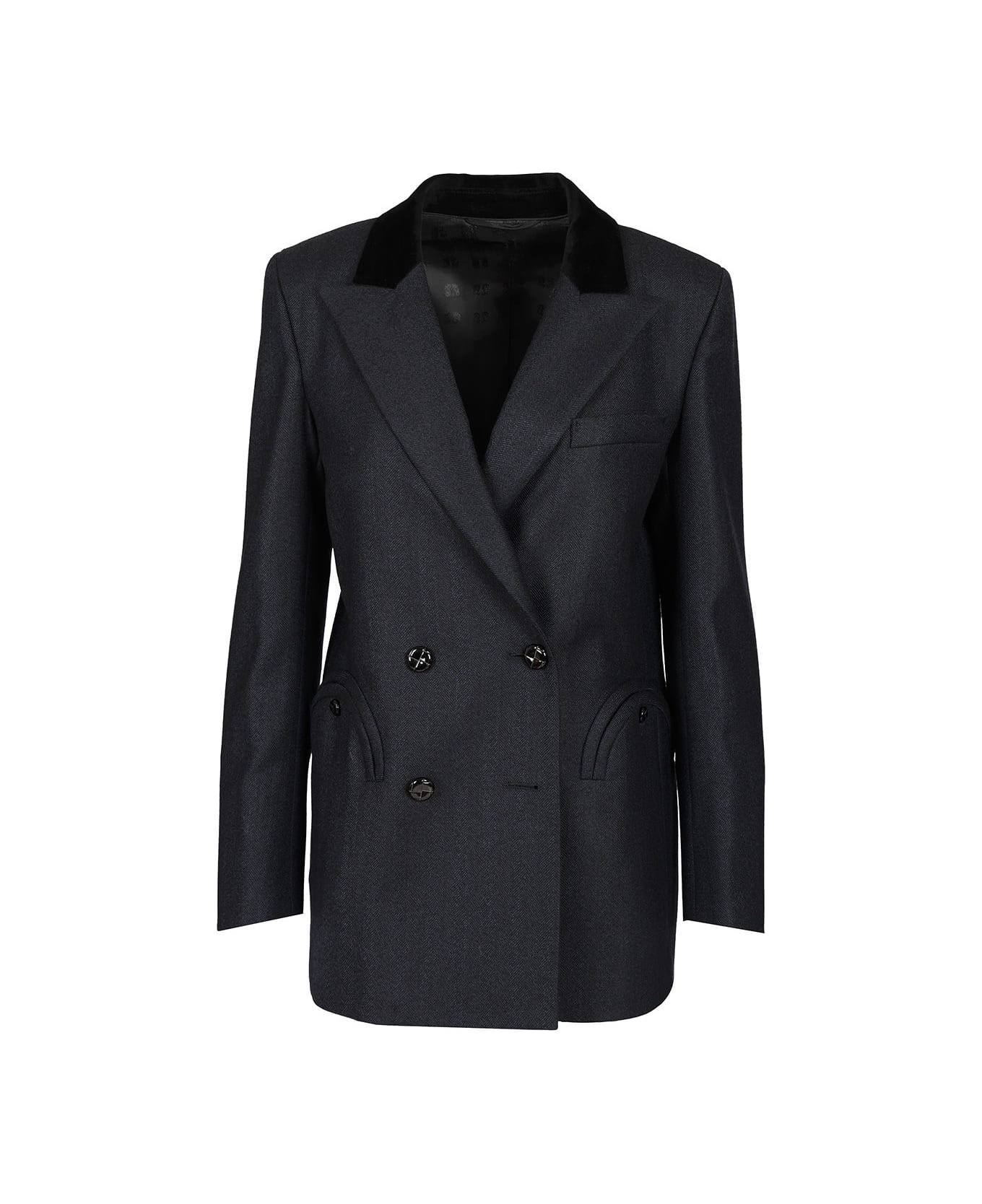 "Everyday" double-breasted blazer in virgin wool by Blazè, with Smiley pockets, velvet collar and peak lapels