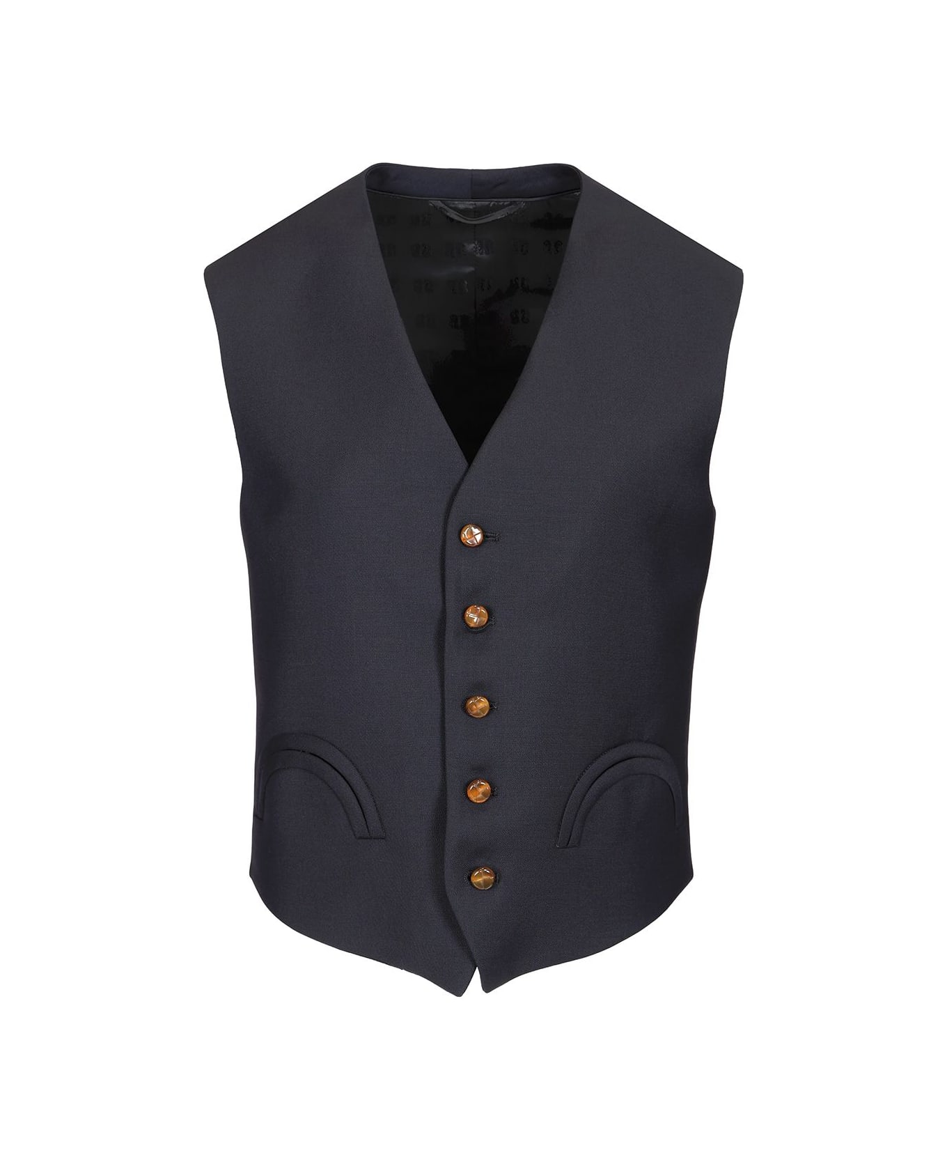 "First Class Navy" wool and mohair vest by Blazé. Regular fit.