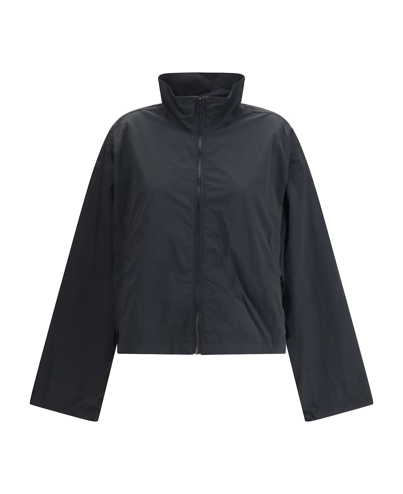 The g-leam windbreaker by diesel expresses a functional and modern attitude through a compact recycled nylon construction with a wrinkled texture. the loose silhouette and high neck create a protective yet relaxed shape, while the zip fastening and pockets ensure everyday practicality. drawstring-adjustable cuffs and hem refine the fit, finished with the tonal oval d logo embroidered on the sleeve as a subtle brand signature.