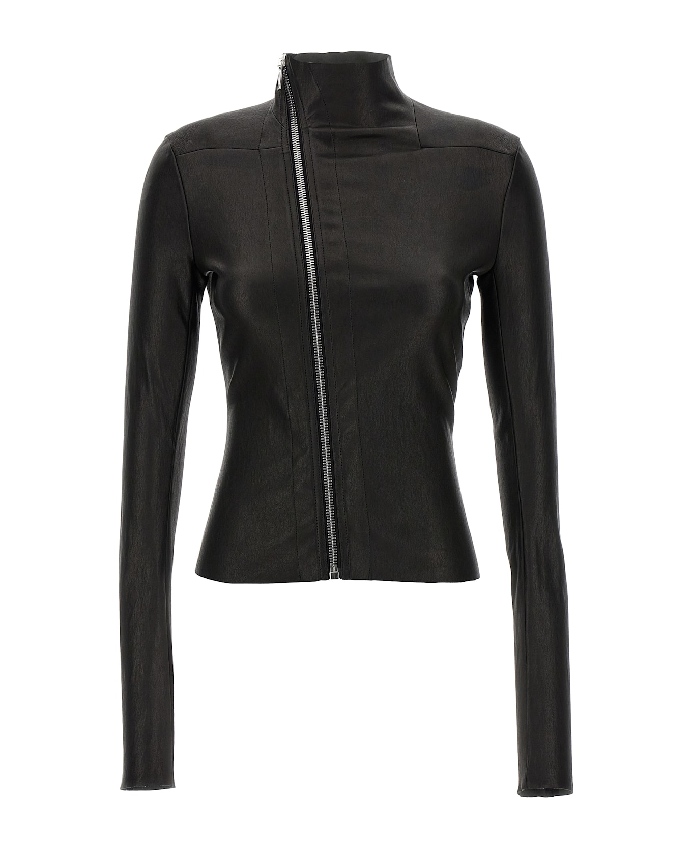'Gary Jacket' stretch leather jacket with asymmetric front closure with metal zip.