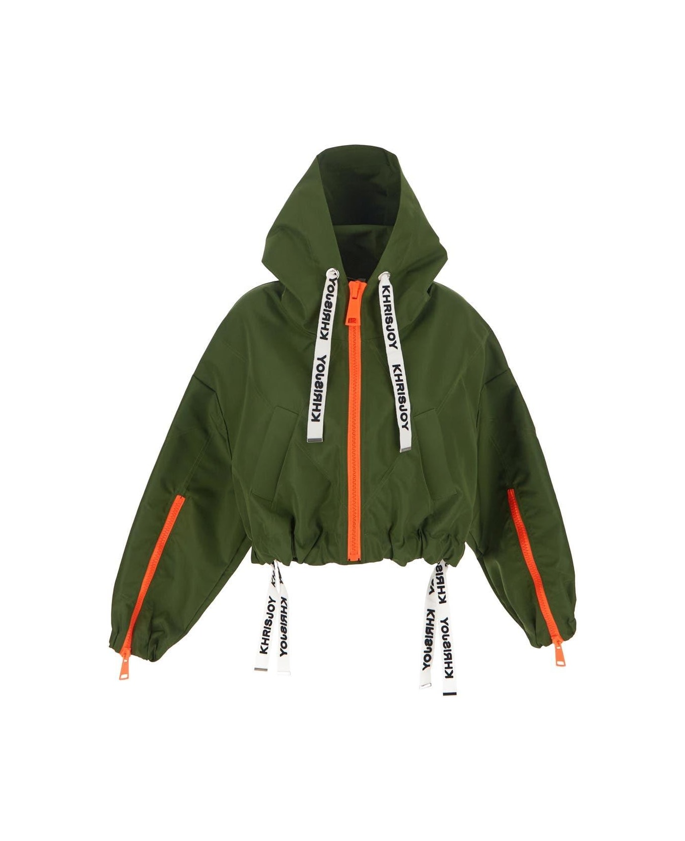 Khrisjoy jacket in green polyester with long sleeves. The item is featured by zip fastening, hoodie, side pockets and crop fit.