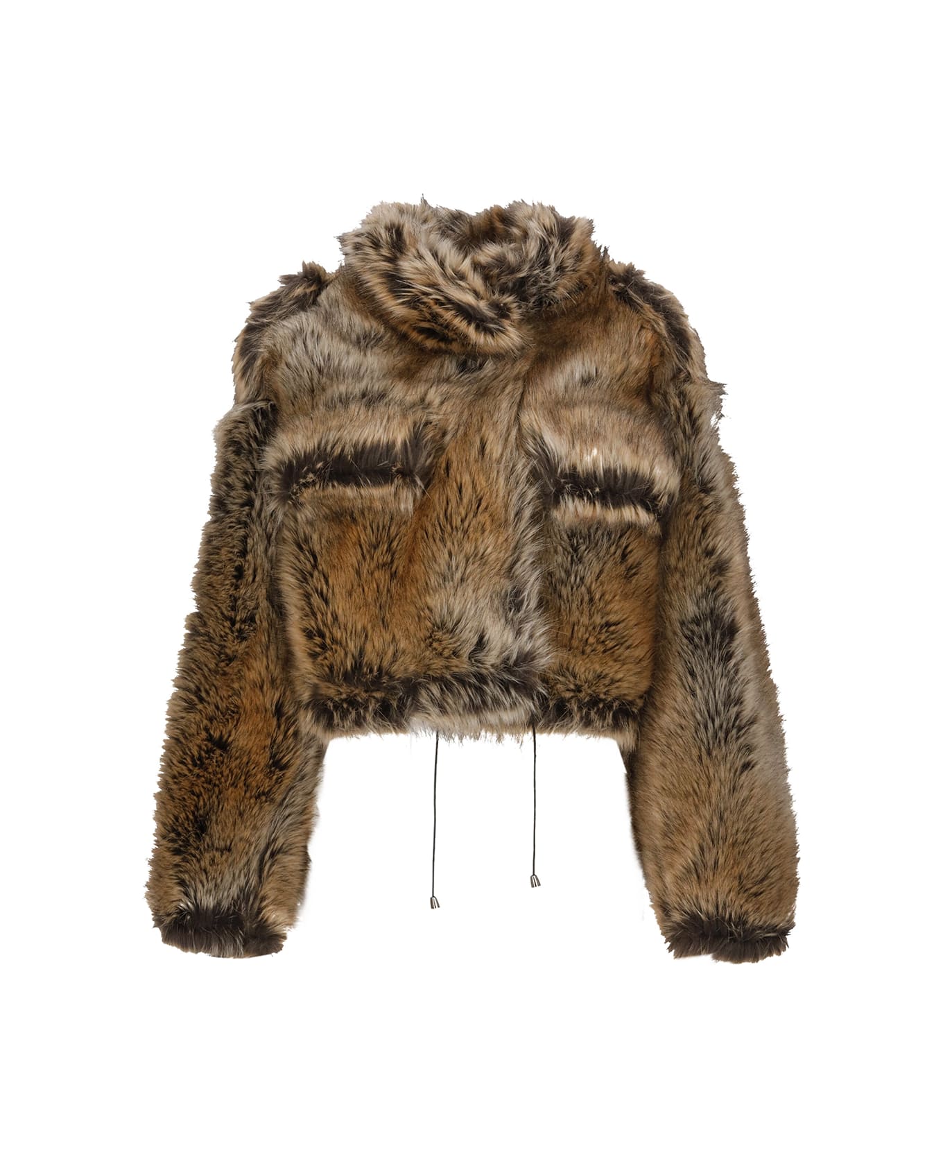 - Brown Darkpark syntetic fur jacket for woman - Collar - Long sleeves - Front hook fastening - Two front flap pockets