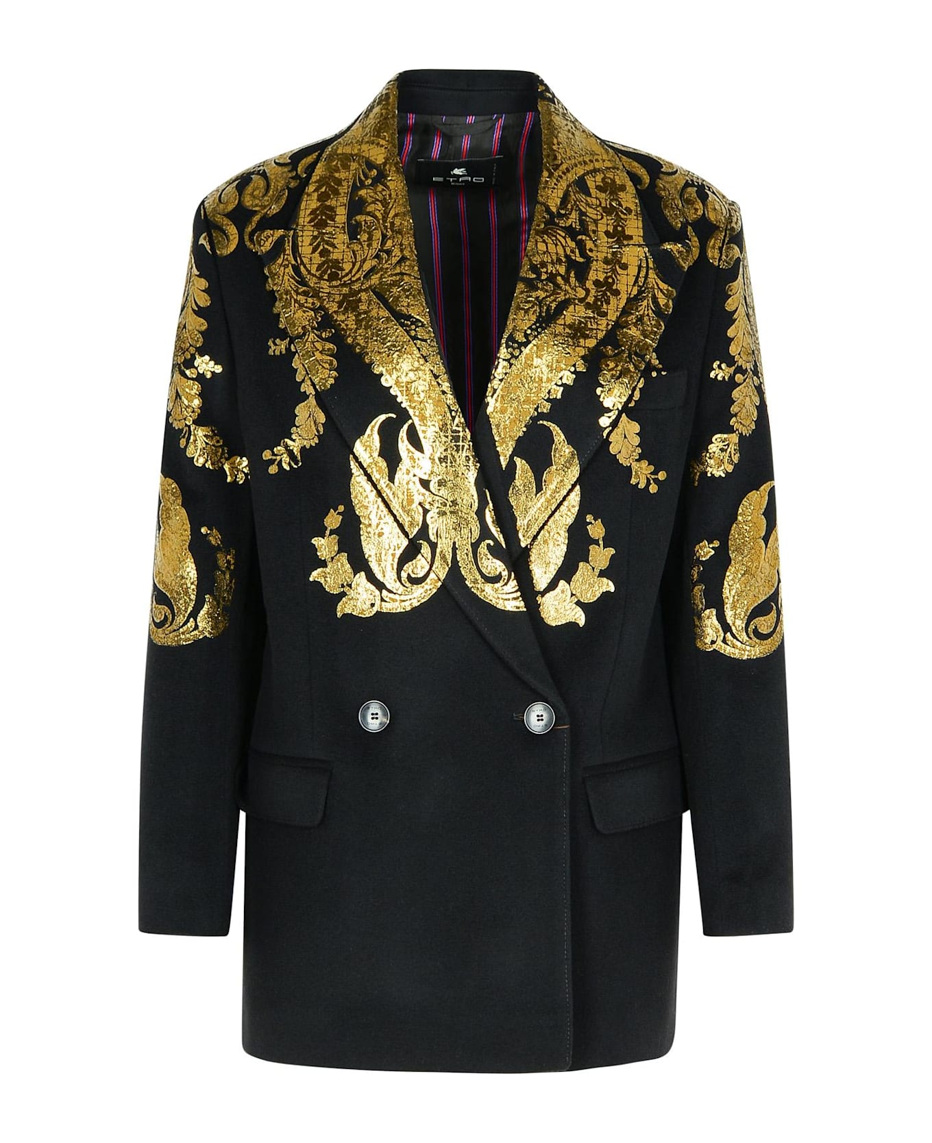 Etro began as an Italian textile brand in 1968. Now, the collections include apparel, accessories, and luxury leather goods. The brand is known for its iconic paisley motif and signature jacquard fabric.